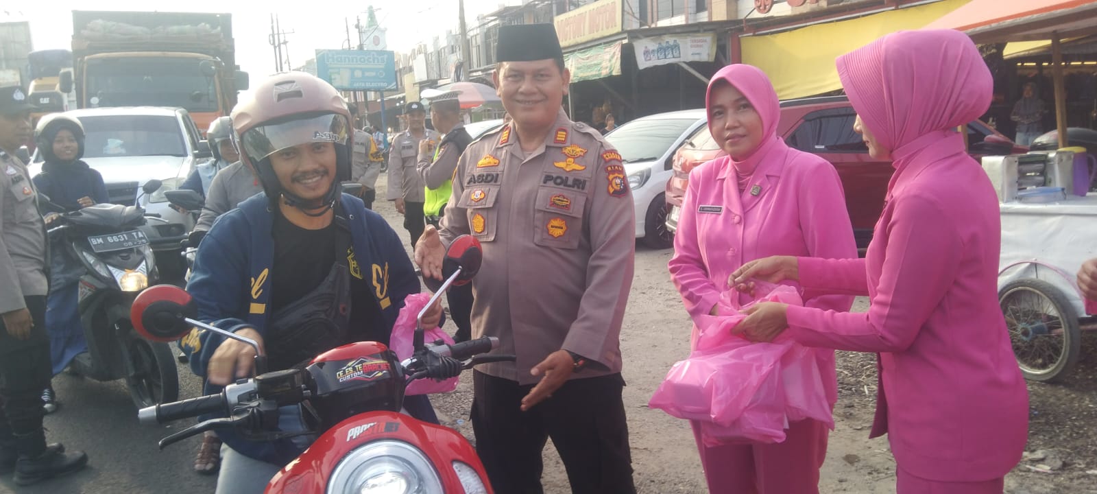 Alhamdulillah, Terima Kasih Komandan atas pemberian Takjilnya.” Sukses dan Jaya Selalu Polsek Siak Hulu” ucap salah seorang pengendara Sepeda Motor saat menerima Takjil dari Kapolsek Siak Hulu AKP Asdisyah Mursyid S.H. Turut serta Jajaran Anggota dan Ibu Ibu Bhayangkari juga membagi Takjil kepada pengguna jalan.