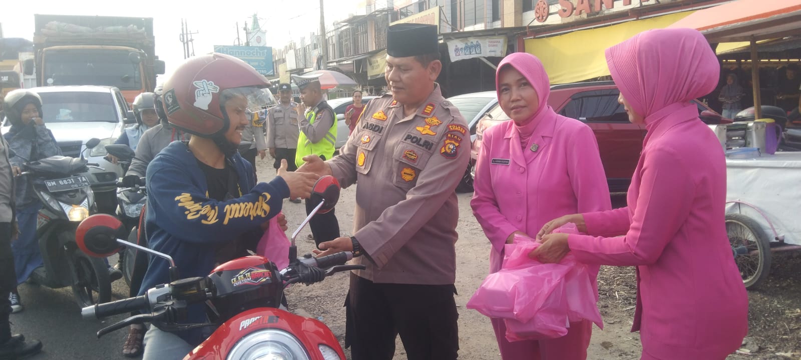 Kampar, Harimaupagi.com – Layak mendapat acungan Jempol, Kapolsek Siak Hulu AKP Asdisyah Mursyid S.H bersama Kanit Lantas Iptu JP. Hasibuan, Panit-I Opsnal Reskrim Iptu Sutarno S.H, Para Bhabikamtibmas, Serta Jajaran Anggota Fungsi. Tampak juga Ibu dr. Jasnimar Asdisyah selaku Ketua Bhayangkari Ranting Polsek Siak Hulu. Tepatnya di depan Kantor Bhabinkamtibmas Siak Hulu Jalan Raya Pasir Putih, sekira pukul 17.30 Wib, berkesempatan berbagi 50 Takjil kepada pengguna jalan tertib berlalu lintas, yang di pimpin langsung Kapolsek Siak Hulu AKP Asdisyah Mursyid S.H. Selasa (26/3/2024)