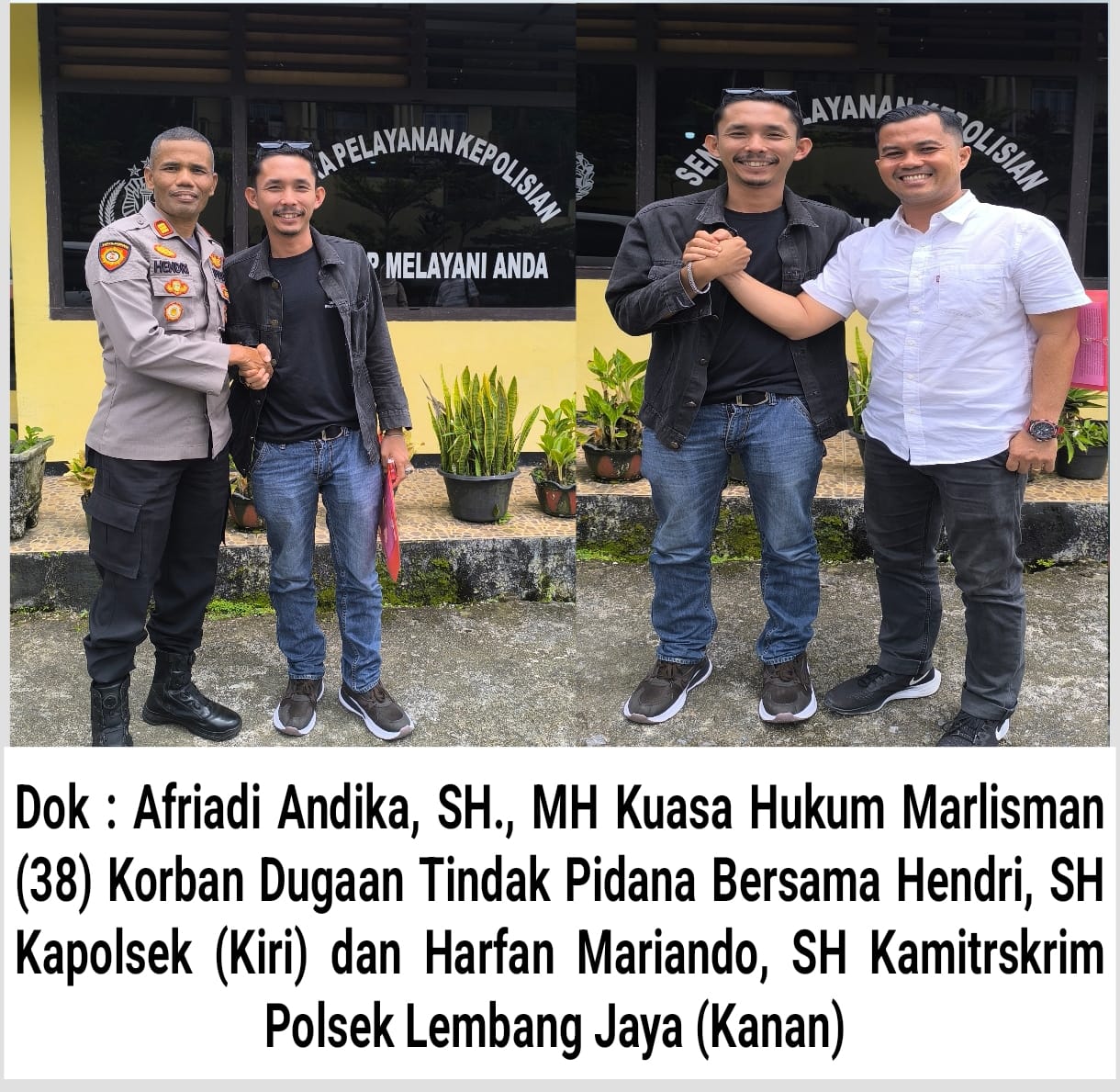 “Dalam perkara Klien saya Marlisman (38) korban dugaan tindak pidana pengeroyokan, yang ditangani oleh pihak Polsek Lembang jaya dengan ini saya tegas sangat pertentangan dengan Perkap Nomor 6 tahun 2019 tentang Penyelidikan Tindak Pidana dan KUHAP pasal 17.” ungkap Afriadi Andika, S.H, M.H dalam pres rilisnya pada awak media.Jum’at (2/05/2025)