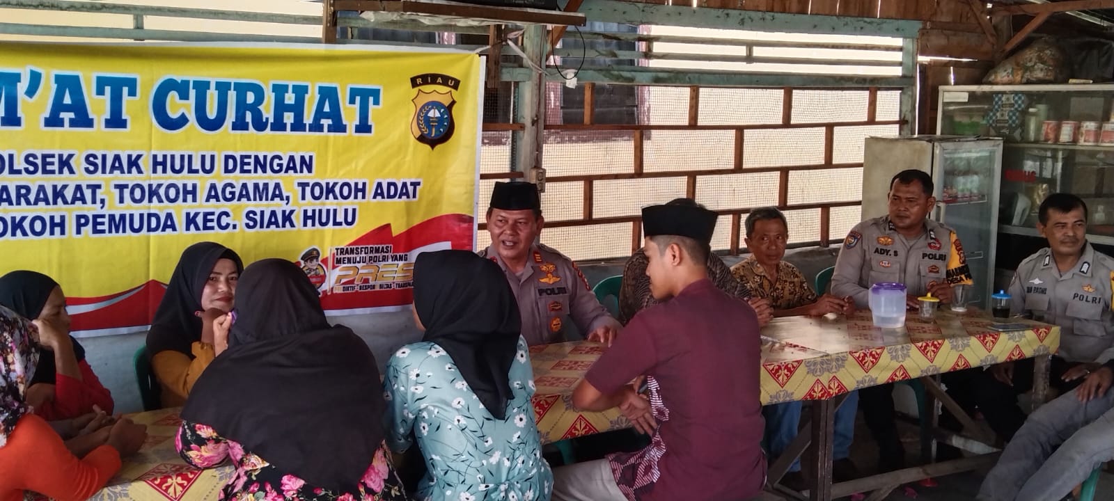 iawali dengan giat Jum’at Curhat, Kapolsek Siak Hulu AKP Asdisyah Mursyid SH didampingi Kanit Provost Bripka Firdaus, S.H, Bhabinkamtibmas Aiptu Ady Suryono, Bripka Jon Badri, dan dari PT. ABL M. Syarif Hidayatullah, SH (Legal dan Humas) Sukimin dan Sayyid Mukti Riau dan Jum’at Curhat kali ini sekaligus memberikan Harkamtibmas kepada masyarakat Desa Pangkalan Baru.
