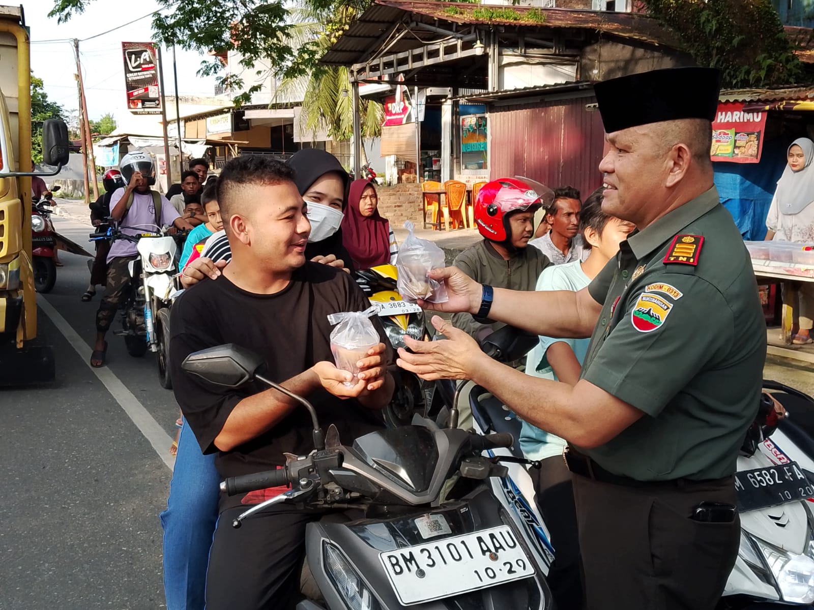 Dandim 0313/KPR Letkol Inf Setiawan Hadi Nugroho, S.H, M.I.P melalui Danramil 06/SH Kapten Cba Y. Zebua kepada Awak Media mengatakan, bahwa pembagian Takjil dan Nasi Kotak ini adalah yang kedua kalinya, dan ini salah satu bentuk kepedulian dan kemanunggalan Koramil/06/SH dalam memaknai nuansa Ramadhan,” kata Kapten Cba Y. Zebua
