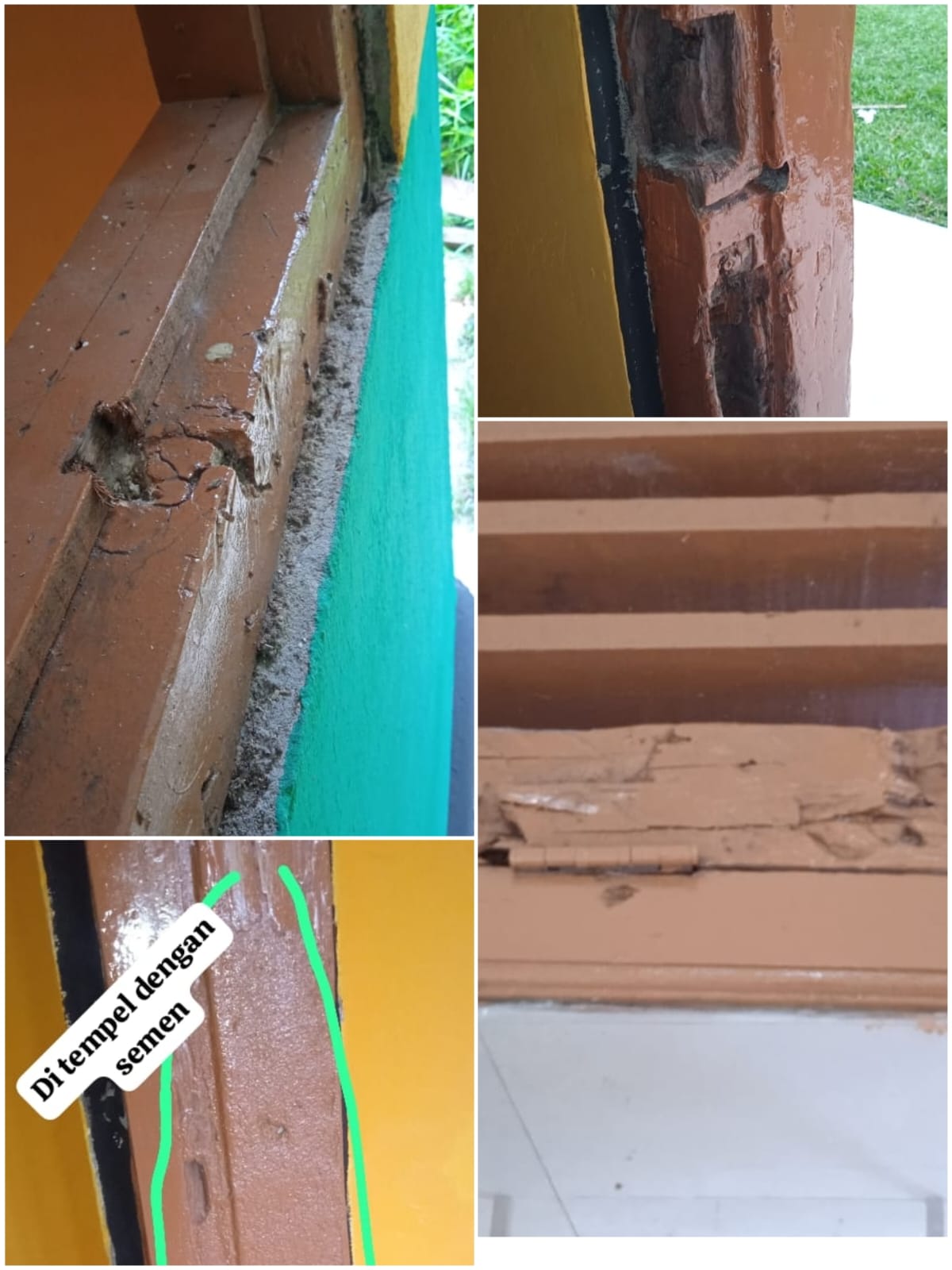 Dari hasil temuan Awak Media, terdapat : 1. Atap Seng Bangunan sudah diganti, apakah memakai baja ringan atau kayu. 2. Daun jendela masih banyak yang keropos, akan tetapi di Cat ulang harusnya layak diganti. 3. Kosen Jendela dan Kosen Pintu juga terdapat yang sudah keropos, dan layak diganti.