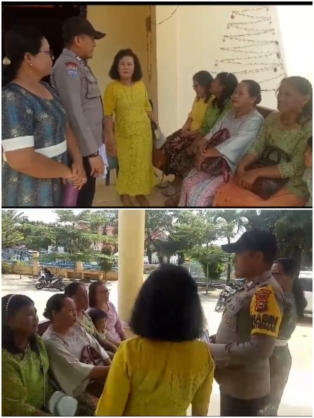 Pada kesempatan ini, sekira pukul 11.30 Wib. Bhabinkamtibmas Aipda Azani dan Bripka Nurhasdianto SH. Memberikan imbauan kepada beberapa jemaat Gereja HKBP, agar bersama sama menjaga Kamtibmas menjelang pesta Demokrasi Pemilu Damai Tahun 2024. Diharapkan kepada seluruh masyarakat. Dalam semangat persatuan dan demokrasi, kita wujudkan Pemilu Damai Tahun 2024.” ucap Bripka Nurhasdianto.