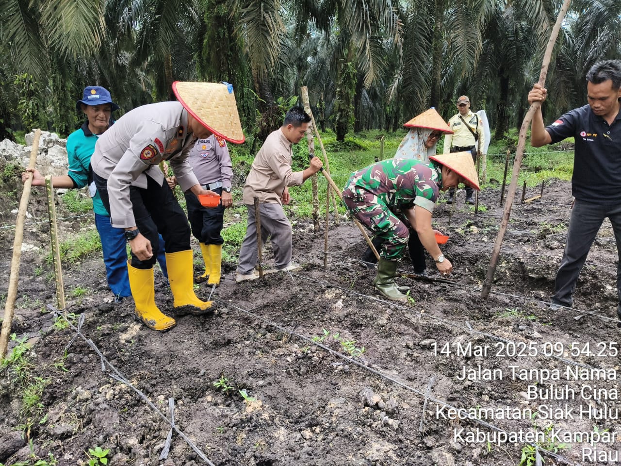 Penanaman jagung Pipil (Tumpang Sari) dilahan milik PT. Agro Abadi-I. Dipimpin langsung Kapolsek Siak Hulu Kompol Pauzi, S.H, M.H bersama Danramil 06/Siak Hulu Kapten Cba Y. Zebua, Kanit Reskrim AKP Jonera Putra, S.H, Kanit Lantas Polsek Siak Hulu Iptu JP. Hasibuan, Kanit Intel Ipda Feri Setiawan, S.E, Bhabinkamtibmas Desa Kepau Jaya/Pangkalan Serik Bripka Zulkarnain.