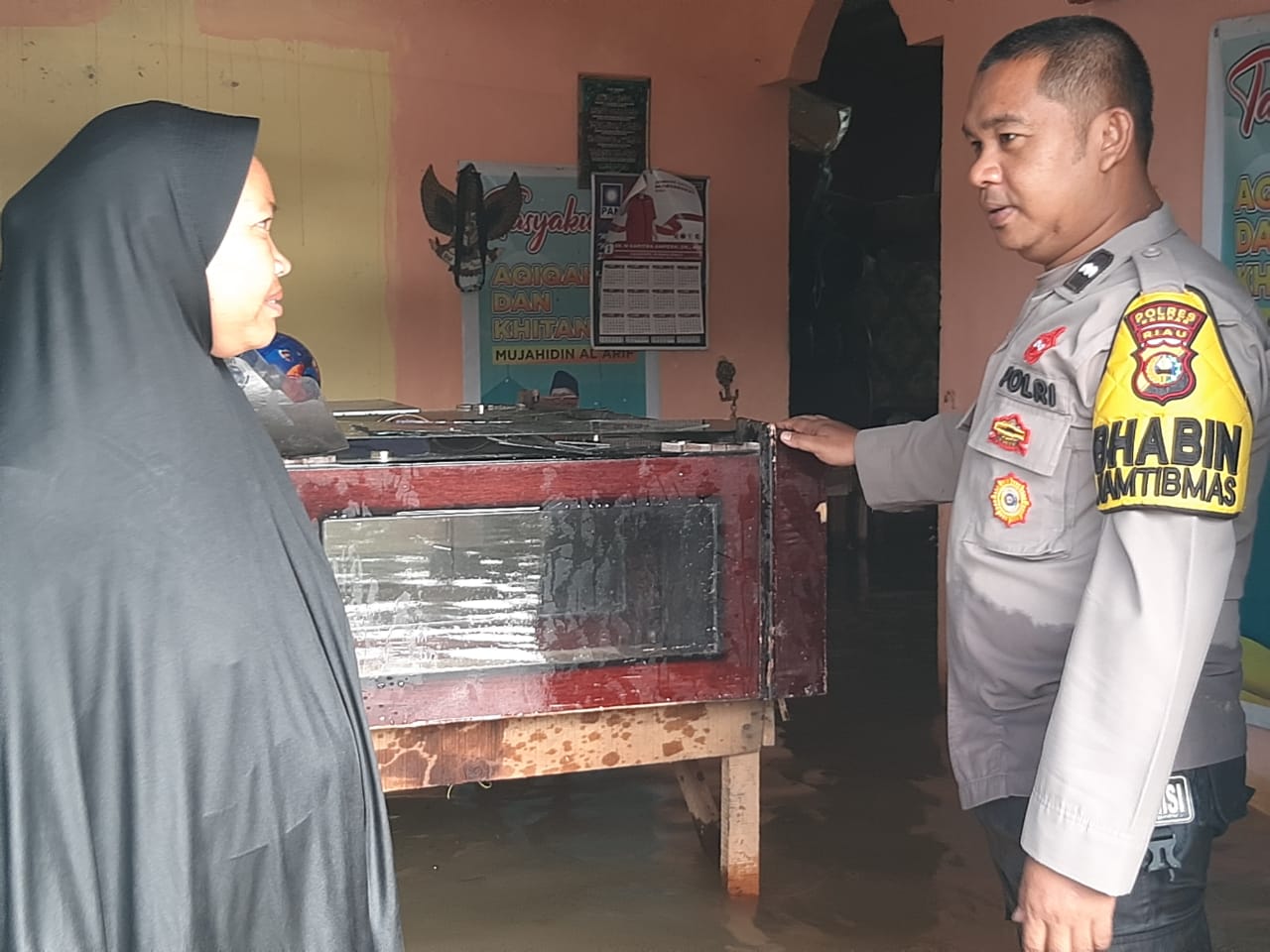 Berjibaku, Akibat Banjir Bhabinkamtibmas Polsek Siak Hulu Beri Edukasi Dan Cooling System Kepada Warga Desa Teratak Buluh
