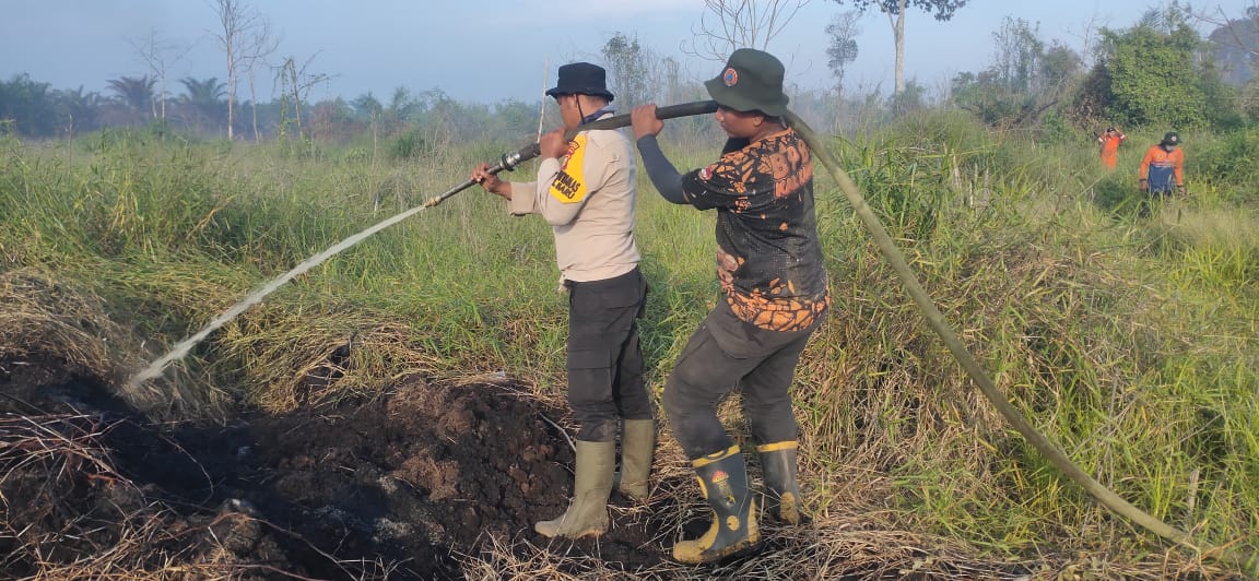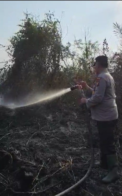 Kegiatan pendinginan terhadap lahan bekas Karhutla terkait faktor rembesan sepadan dari lahan yang termonitor Aplikasi DLK, di RT 01/ RW 01, Dusun-I, Desa Pangkalan Baru Kecamatan Siak Hulu. Luasnya lebih kurang 3 hektar,’’ ungkap AKP Asdisnyah Mursyid, S.H