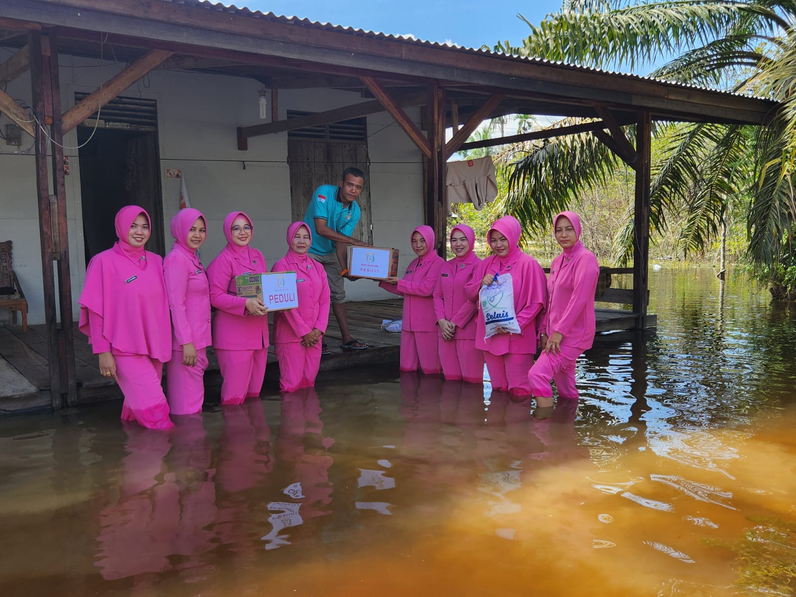 Pada kesempatan ini, Ketua Bhayangkari Ranting Polsek Kampar Kiri Hilir Ny. Susi Elva Hendri berserta pengurus. Memberikan semangat atas musibah banjir, atas ke prihatinan dan sebagai bentuk kepedulian “Bhayangkari Peduli” memberikan paket sembako kepada 11 Kepala Keluarga yang rumahnya terendam banjir raya rata 15 Cm s/d 25 Cm.