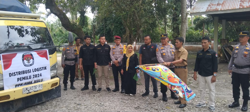 Kapolsek Siak Hulu AKP Asdisyah Mursyid S.H yang juga di dampingi BKO Polda Riau AKP Bennisyaf S.H. Pada kesempatan ini Kapolsek juga berharap pelepasan dan pendistribusian Kotak Suara Pemilu dari PPK Siak Hulu kepada 12 PPS Desa dapat terlaksana dengan aman dan terkendali.