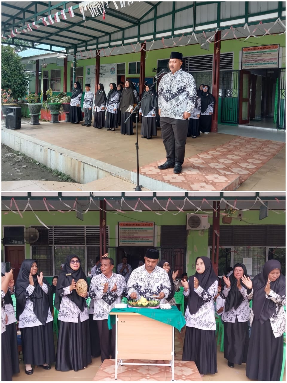 Pelaksanaan HUT PGRI Ke-79 dan HGN 2024 SMAN 1 Siak Hulu dengan mengusung tema “GURU HEBAT, INDONESIA KUAT” menurut informasinya bahwa, tahun ini Kementerian juga akan memberikan pelatihan terhadap guru guru serta memberikan perlindungan untuk para guru kedepannya,” terang Drs. Andi Surya