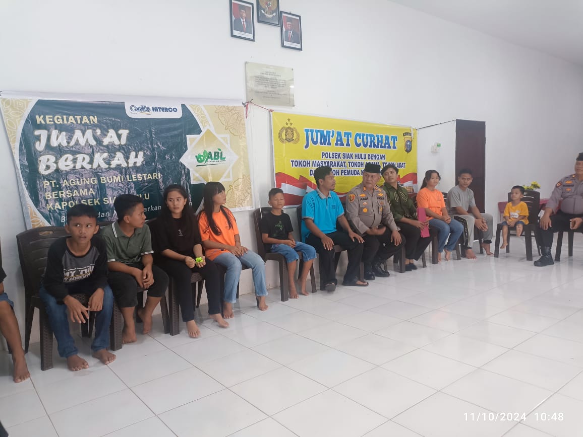 Kapolsek Siak Hulu AKP Asdisyah Mursyid, S.H yang juga didampingi Waka Polsek AKP Yulius, Kanit Sabhara Iptu Rusman, Kanit Lantas Iptu JP. Hasibuan, Kanit Binmas Ipda Adi Zulfikar, Bhabinkamtibmas Iptu Zulkarnain, Iptu Edison dan pimpinan dari PT. Agung Bumi Lestari (ABL) diwakili Humas M Syarif dan Staf.