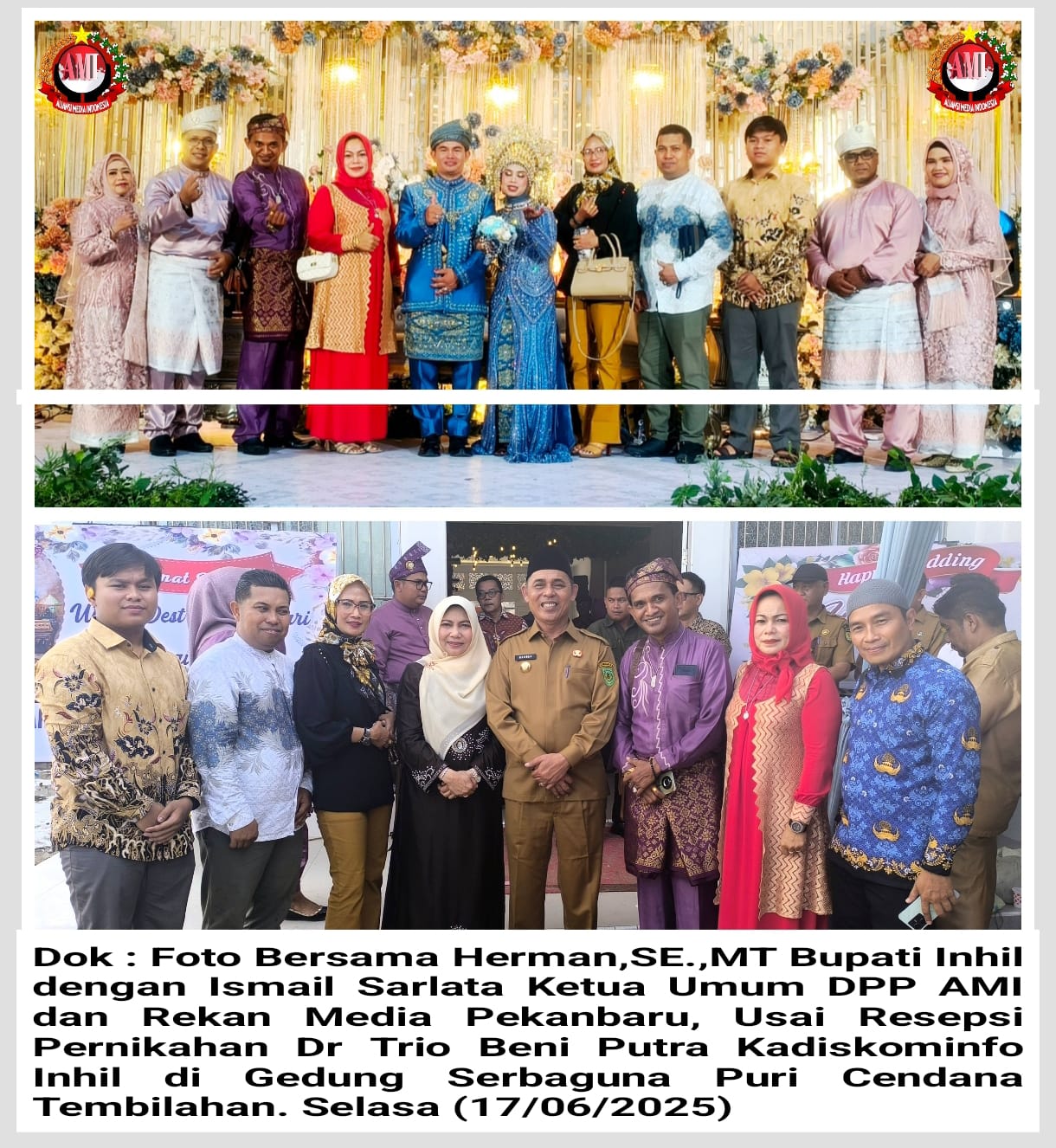 Didalam acara resepsi pernikahan tersebut diatas, turut hadir Bupati Inhil Herman,SE.,MT, Anggota DPRD Tembilahan, dan OPD serta Ismail Sarlata Ketua Umum Dewan Pimpinan Pusat Aliansi Media Indonesia (DPP-AMI) didampingi istri tercinta Fitri dan M.Rivaldo Pimpinan Redaksi media online www.lintasberitaindonesia.com, Adi Umar Pimpinan Redaksi Media Online www.hitsnasional.com dan Nurhasanah Pimpinan Redaksi www.kujangpost.com yang turut diundang langsung oleh Dr Trio Beni Putra Kadiskominfo Inhil.