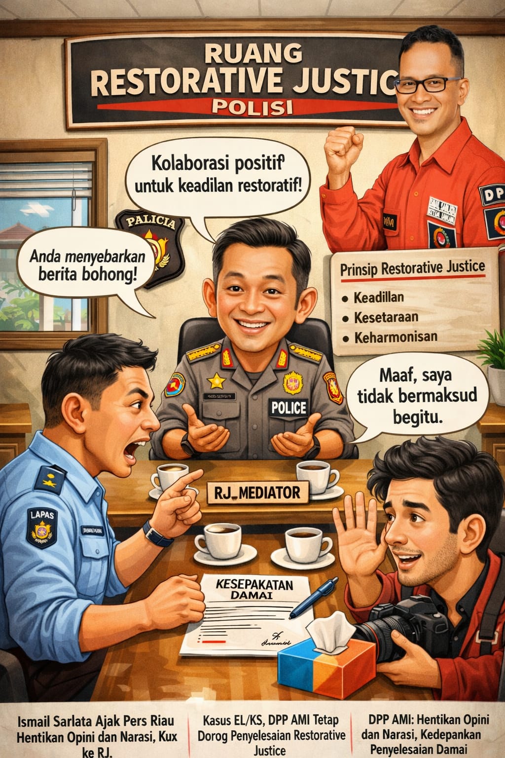 Pekanbaru,Harimaupagi.com – Ketua Umum Dewan Pimpinan Pusat Aliansi Media Indonesia (DPP AMI), Ismail Sarlata, mengajak seluruh insan pers di Riau untuk menahan diri dan menghentikan penyebaran opini maupun narasi yang berpotensi memperkeruh situasi terkait perkara yang melibatkan pihak Lembaga Pemasyarakatan (Lapas) Kelas IIA Pekanbaru dan rekan pers berinisial KS alias EL
