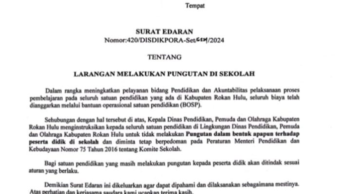 Menanggapi hal tersebut, Bupati Rokan Hulu (Rohul), Anton, ST, MM Kamis, (6/3), mengatakan tidak boleh dilakukan kutipan dalam bentuk dan alasan apapun yang dilakukan oleh sekolah.