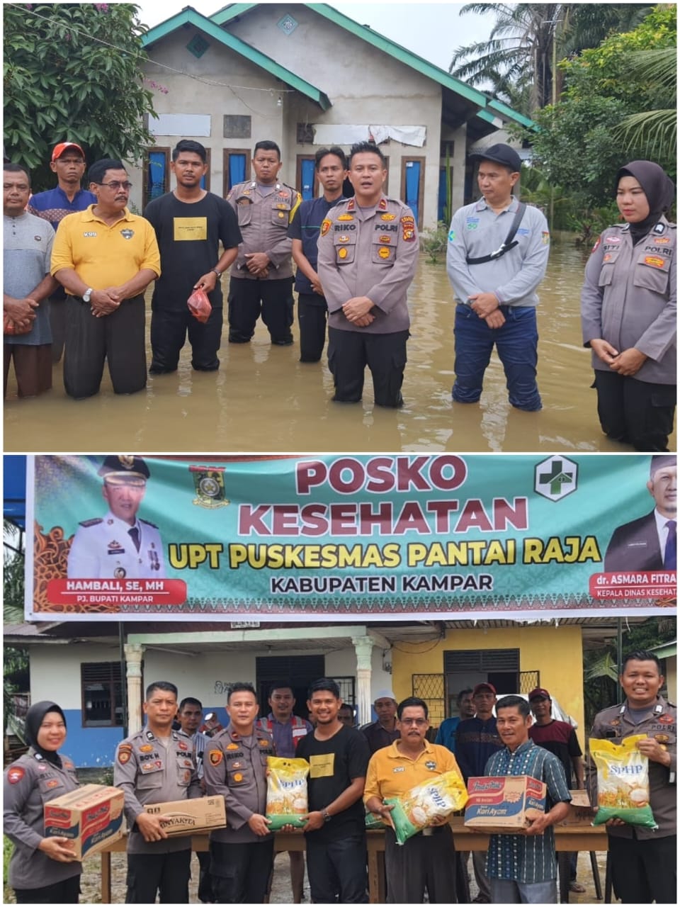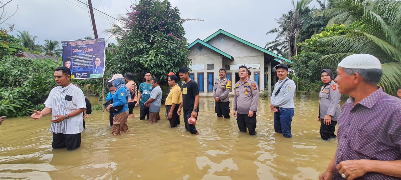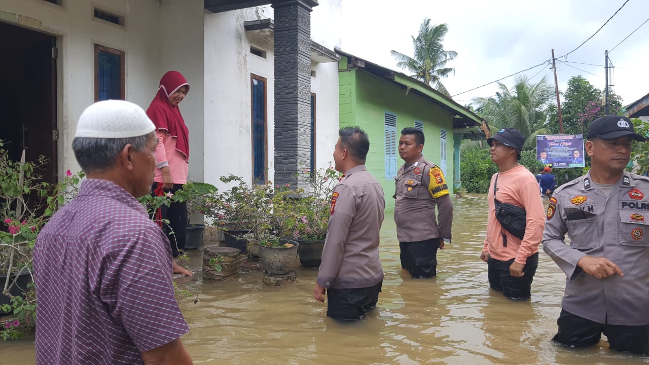 Kapolsek Perhentian Raja Ipda Riko Rizki Masri S.H, M.H selaku Komando memimpin peninjauan warga yang terdampak akibat banjir menyampaikan bahwa, kami pihak Polri akan ada selalu di tengah masyarakat. Keluhan dan pertolongan masyarakat akan kami tampung, apalagi bencana yang menimpa masyarakat akibat banjir,” ucap Kapolsek
