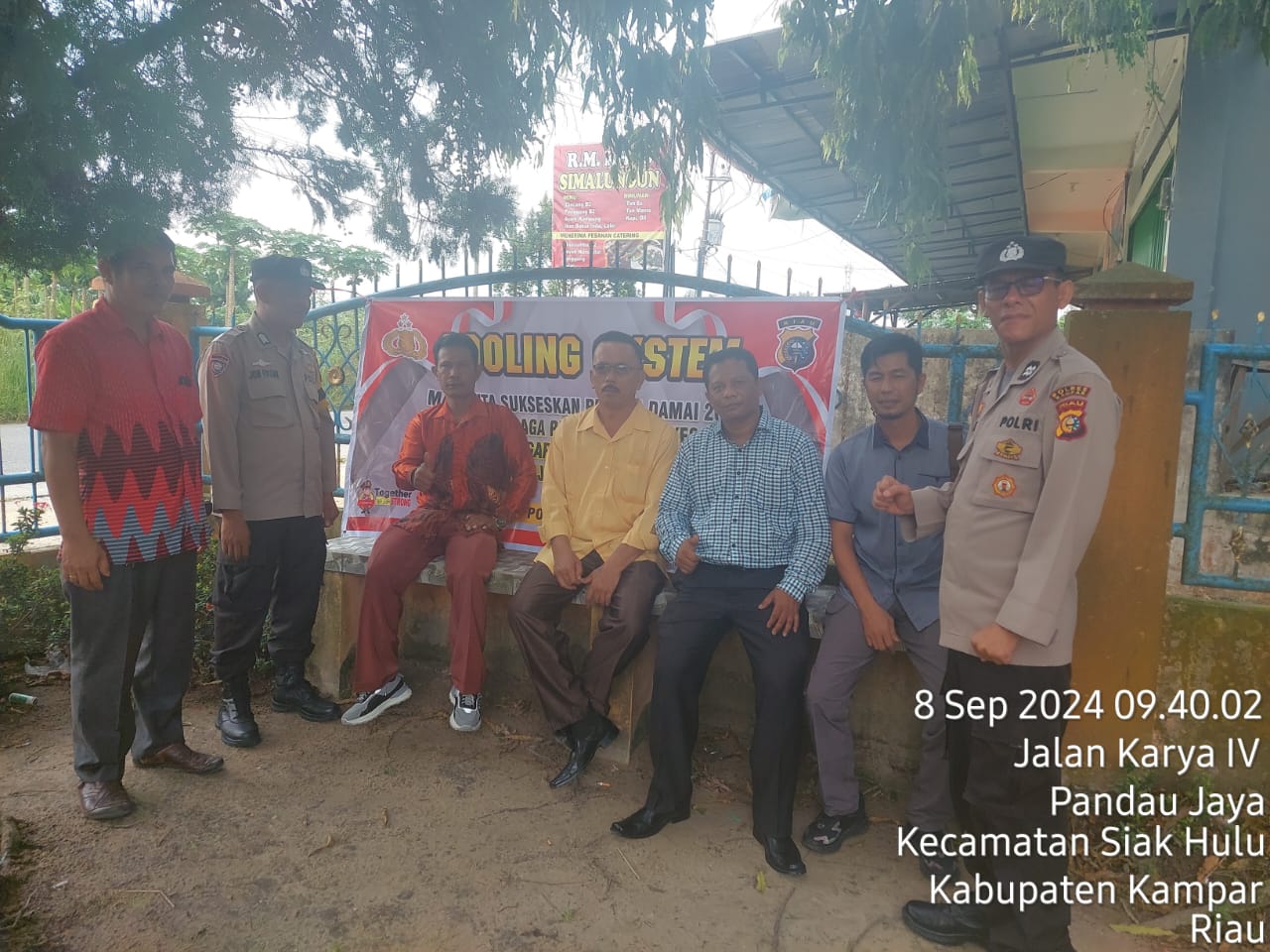 Kapolsek Siak Hulu AKP Asdisyah Mursyid, S.H melalui Panit-I Binmas dan Bhabinkamtibmas Bripka Jhon Badri menyampaikan Pesan pesan, ” Mari bersama sama menjaga situasi Kamtibmas menjelang Pelaksanaan Pilkada Damai tahun 2024.” ucap Aiptu Edison