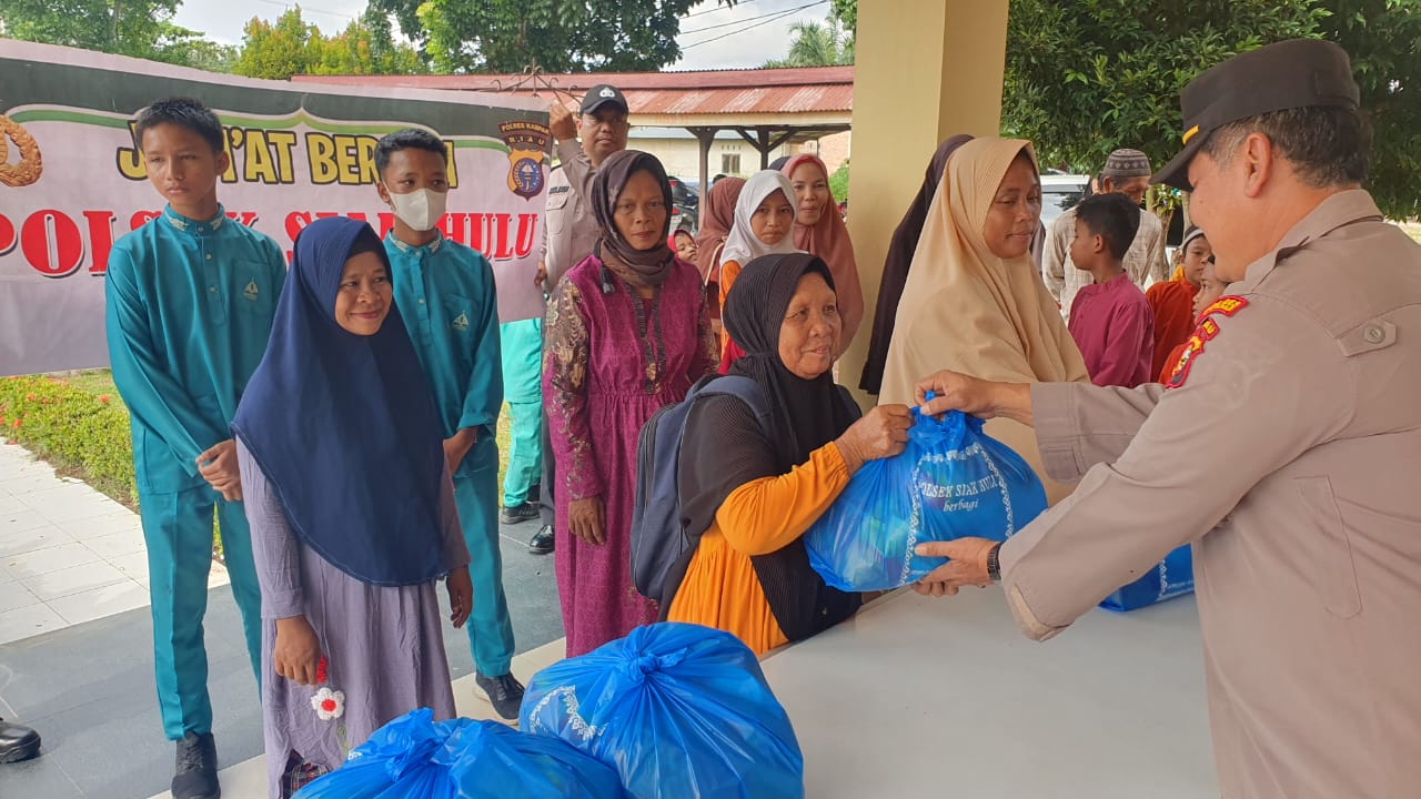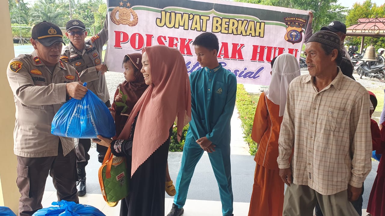 Kapolsek Siak Hulu AKP Asdisyah Mursid SH mengucapkan, terima kasih atas kehadiran anak anak kami berikut para orang tua yang mendampingi. Dalam Giat Bakti Sosial dan Jum’at berkah dengan Kolaborasi dengan Redaksi MO Harimaupagi.com, kita bisa bersama memberikan bantuan kepada anak anak kami yang masih duduk di bangku sekolah di Desa Baru dan Desa Pangkalan Baru.