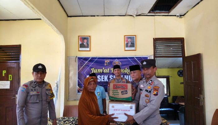 Usai melaksanakan giat Jum’at Curhat, Kompol Pauzi, S.H, M.H langsung pimpin Jumat Berkah Berbagi Sembako bersama Jajaran personil Anggota, memberikan bantuan sosial berupa paket Sembako 50 Kg Beras, 10 Kg Gula, 10 Liter Migor, 10 Kotak Teh Prenjak, dan 2 Kotak Mie Instan.