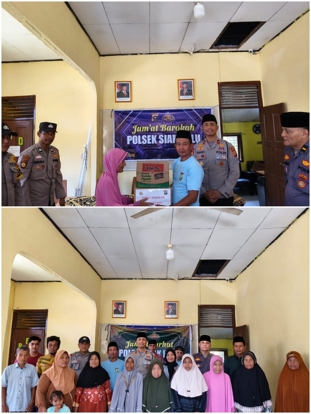 Kampar, Harimaupagi.com – Kegiatan Rutin yang dilaksanakan pada hari Jumat. Kapolsek Siak Hulu Kompol Pauzi, S.H, M.H kali ini melaksanakan giat Jumat Curhat dan Jum’at Berkah Berbagi Sembako bersama Kanit Binmas Ipda Adi Zulfikar, Aiptu Agus Syaputra, S.H dan Bhabinkamtibmas Buluh Nipis Aipda Nurhasdianto, S.H di Desa Buluh Nipis kecamatan Siak Hulu kabupaten Kampar. Jumat (18/4/2025).