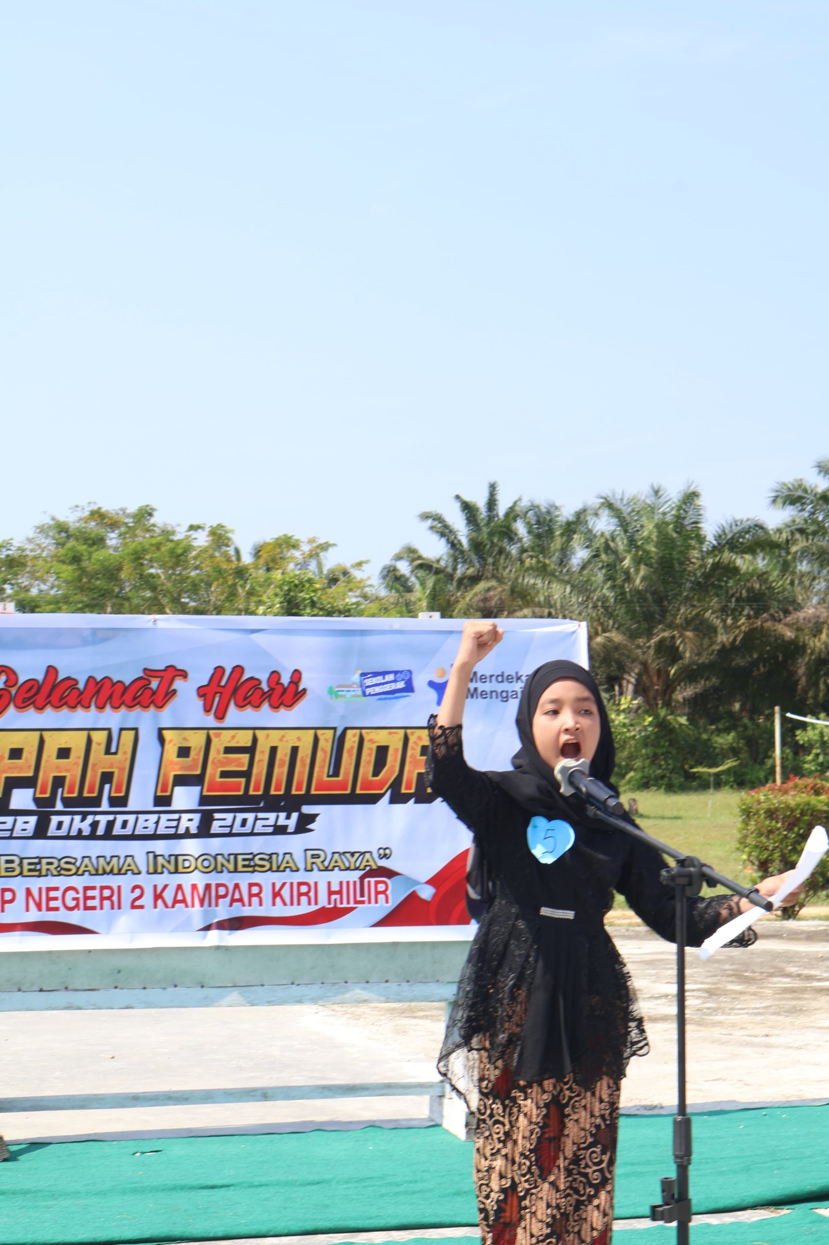 ari Rabu pagi yang cerah, ratusan siswa siswi UPT SMPN 2 Kampar Kiri Hili Kabupaten Kampar memperingati HUT Sumpah Pemuda Ke-96 dan dilanjutkan perayaan dengan mengadakan perlombaan Baca Puisi, Pentas Drama dan Desain Poster. Rabu (30/10/2024)
