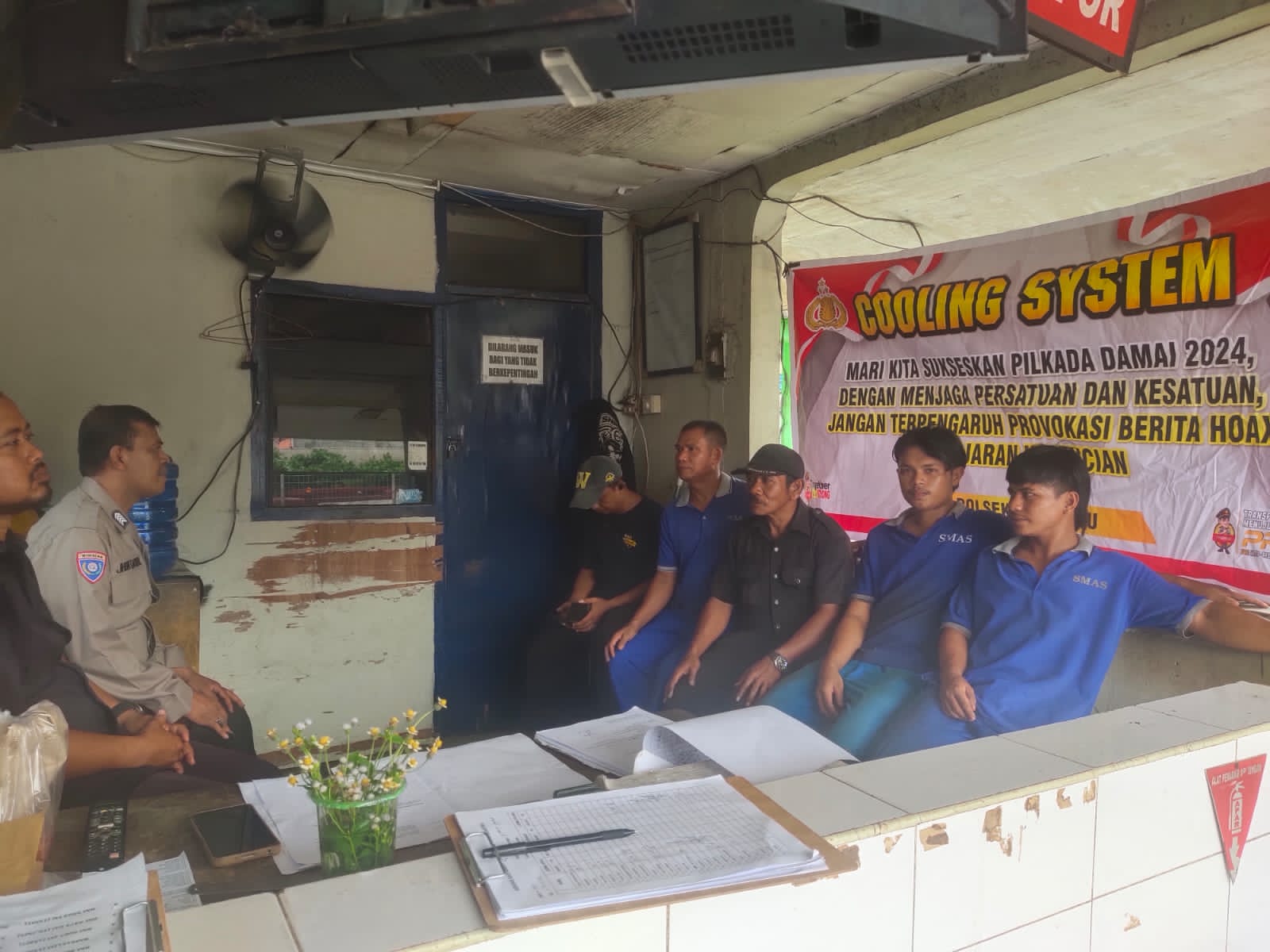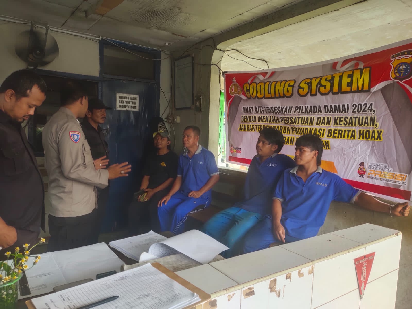 Kampar, Harimaupagi.com – Dalam rangka ajang Pilkada Serentak yang akan dilaksanakan pada tanggal 28 Nopember 2024. Kapolsek Siak Hulu AKP Asdisyah Mursyid, S.H selama tahapan menjelang Pilkada serentak, perintahkan Unit Binmas melaksanakan “Cooling System” diberbagai tempat khususnya di kecamatan Siak Hulu kabupaten Kampar.