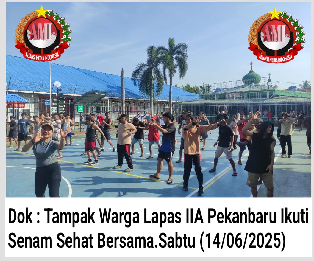 Pekanbaru, Harimaupagi.com – Olah raga merupakan suatu kegiatan yang dapat meningkatkan kesehatan tubuh manusia. Oleh sebab itu warga binaan Lembaga Pemasyarakatan (Lapas) Kelas IIA Pekanbaru mengikuti kegiatan olah raga senam yang diadakan di halaman olah raga Lapas mulai pukul 08.00 wib sampai dengan selesai, Sabtu (14/06/2025).