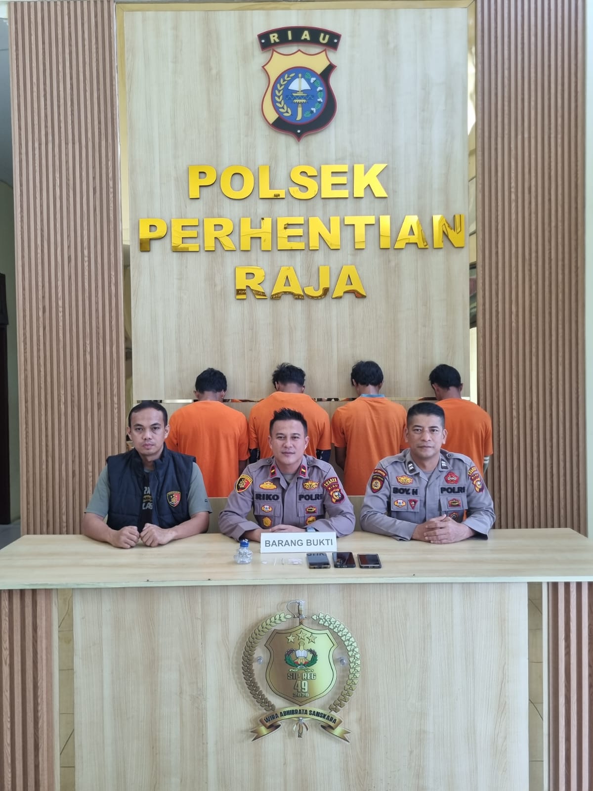 Kanit Reskrim Polsek Perhentian Raja, yang dipimpin Aipda Agus Kurnia yang telah melakukan penyelidikan dan pengintaian. Berhasil menangkap 4 orang pelaku sedang asyik menikmati Narkotika jenis Shabu di salah satu rumah kosong Desa Lubuk Sakat kecamatan Perhentian Raja kabupaten Kampar.
