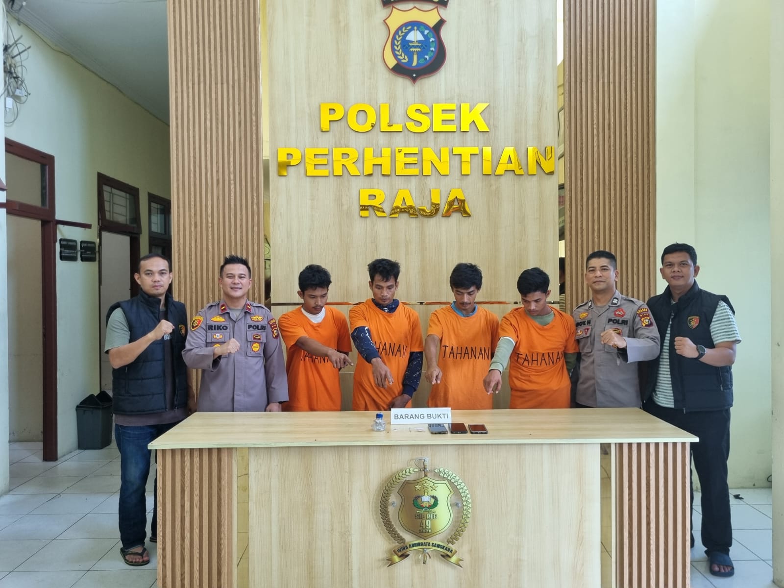 Usai dilakukan penggeledahan, ke 4 pelaku berikut barang bukti 1 paket kecil diduga Narkotika jenis Shabu langsung kami amankan dan di gelandang ke Mapolsek Perhentian Raja untuk dilakukan proses penyidikan lebih lanjut,” kata Aipda Agus Kurnia.