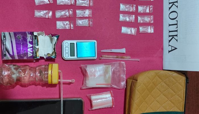 Kini ke 2 (dua) tersangka berikut barang bukti 4 (empat) paket sedang Narkotika jenis Sabu di bungkus plastik bening, 28 (dua puluh delapan) paket kecil Narkotika jenis Sabu di bungkus plastik bening, 4 (empat) bungkus plastik bening, 1 (satu) timbangan digital, 1 (satu) set alat isap Sabu (Bong) dan kaca pirex, 1 (sat) unit Handphone Ohonebmerek IPO Y27 warna biru dan 1 (satu) Hand Phone merek Samsung A04 warna hitam,” terang Kompol Pauzi, S H, M.H.