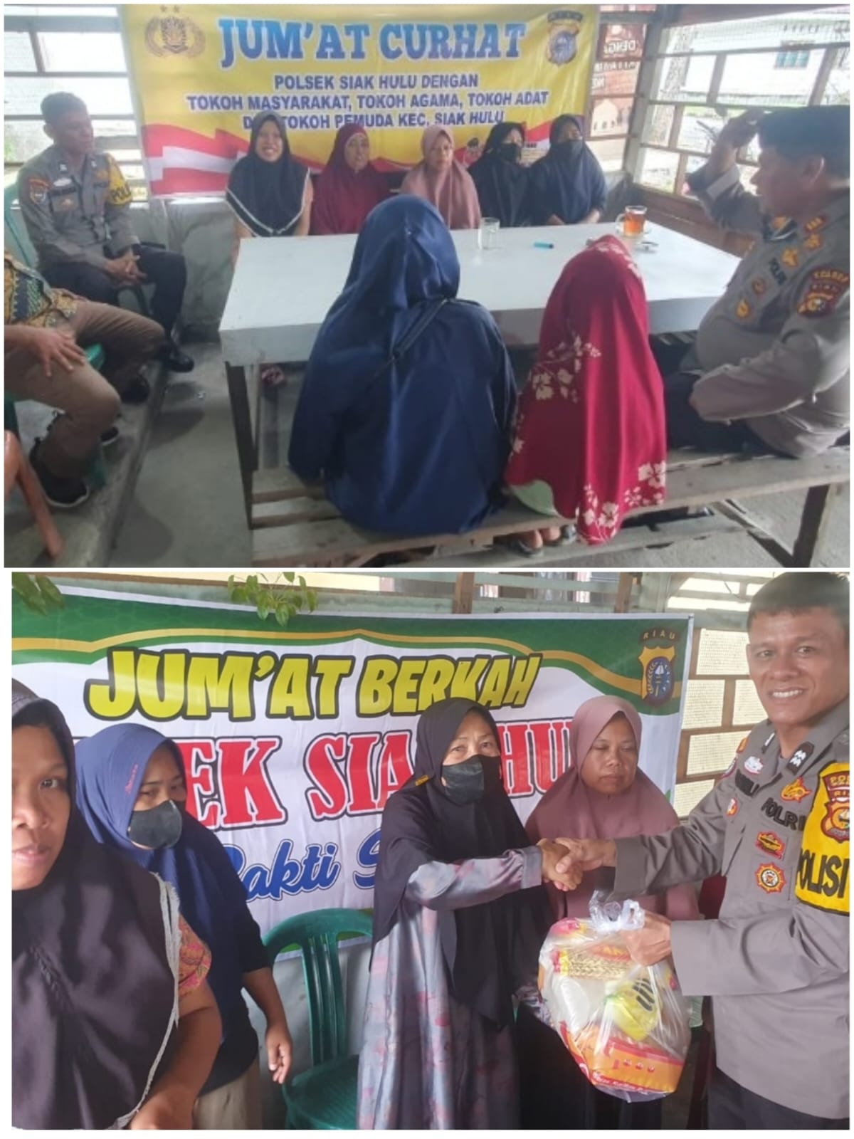 Tujuan Kapolsek Siak Hulu melaksanakan kegiatan Jum’at Curhat merupakan program Kapolri untuk menampung keluhan masyarakat, terkait Gangguan Kamtibmas dan Penyakit Masyarakat di lingkungan tempat tinggal demi terciptanya situasi Kamtibmas yang aman dan Kondusif khususnya di wilayah Kecamatan Siak Hulu.