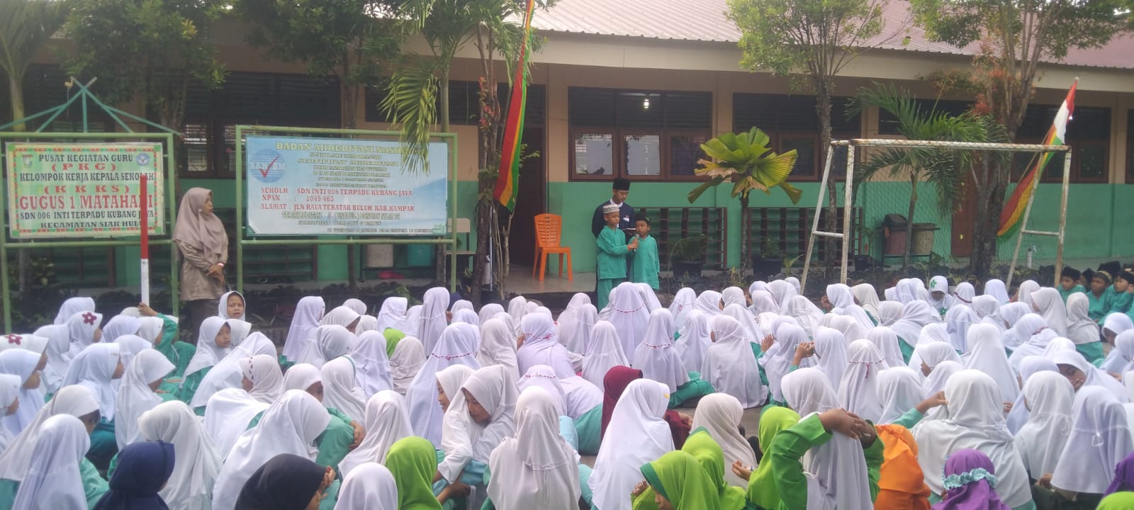 Kegiatan Rohis dilaksanakan setiap hari Jum’at, tampak Kepala UPT SDN 006 Kubang Jaya H. Marskal Ujang, S.Pd, M.Si dan dihadiri terkhususnya para peserta didik dan para majelis guru yang beragama Islam.