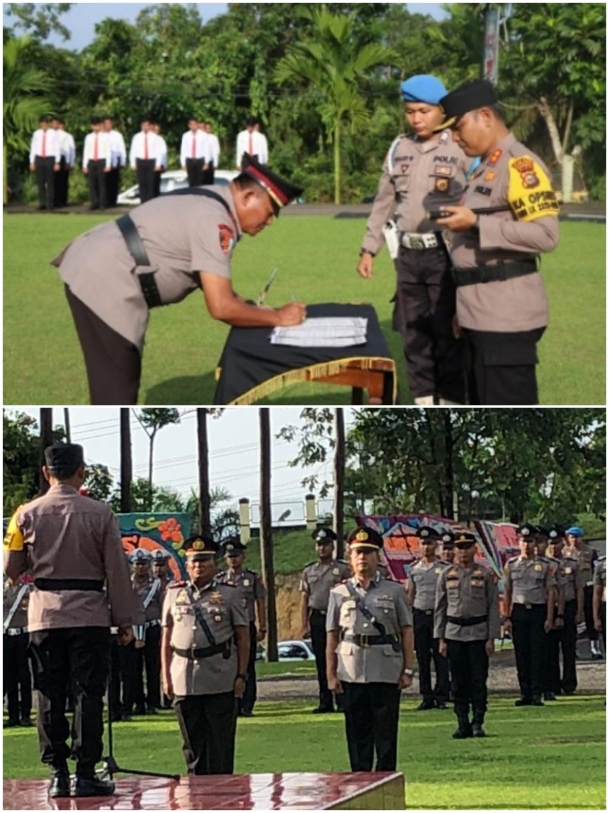 Acara Sertijab di gelar sekira pukul 07.30 Wib, di pimpin langsung Kapolres Kuansing AKBP Pangucap Priyo Soegito S.I.K, M.H dan di dampingi Waka Polres Kompol Robert Arizal S.Sos, dan di hadiri Para Kabag, Para Kasat, Para Kapolsek jajaran Polres Kuansing, serta Ketua Bhayangkari berserta pengurus, dan seluruh personil anggota Polres Kuansing.