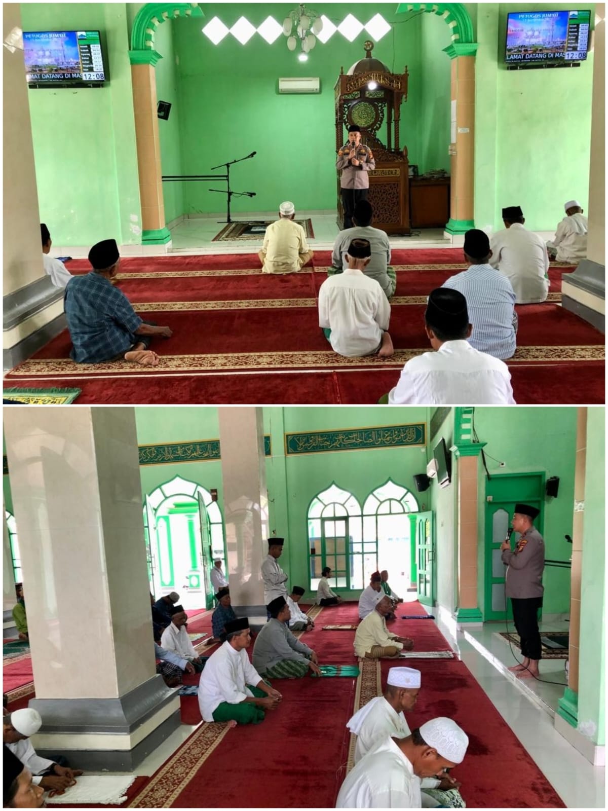 Kapolsek Perhentian Raja Sosialisasi Cooling System Pemilu Damai 2024 di Mesjid An Nur Desa Hangtuah