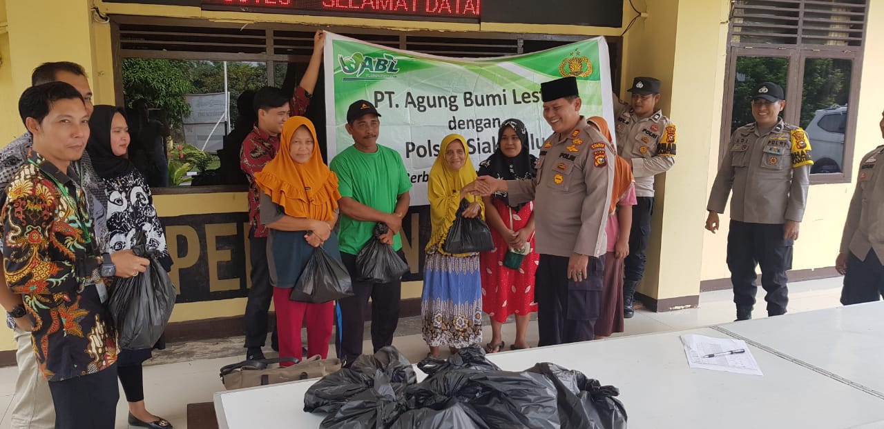 Pada Jumat Berkah kali ini, Kapolsek Siak Hulu AKP Asdisyah Mursyid SH bersama PT. ABL diwakili Sdri. Fanny berserta Staf, dan Bhabinkamtibmas Aiptu Ady Suryono dan Aipda Nurhasdianto S.H.Pada giat Bhakti Sosial ini Polsek Siak Hulu berkesempatan berbagi sembako kepada 10 orang warga Desa Pangkalan Baru kecamatan Siak Hulu kabupaten Kampar. Dengan memberikan masing masing sembako berupa, Minyak Goreng 1 Liter, Gula 1 Kg, Indomie 5 Bungkus dan 1 Botol Syrup.