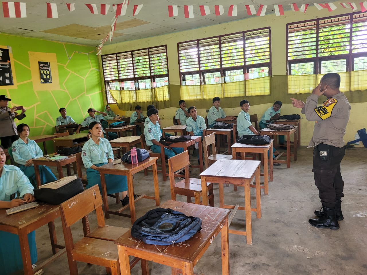 Pada kesempatan ini, kami juga mengimbau para siswa siswi untuk tetap menjaga kenyamanan dalam proses belajar mengajar maupun lingkungan sekolah. Hindari perkelahian antar kelompok maupun pribadi (Bullying) dan selalu menjaga Keamanan dan Ketertiban (Kamtibmas) baik di lingkungan sekolah maupun di lingkungan tempat tinggal kita masing masing,” Ingat Polri selalu ada di tengah tengah masyarakat.” imbau Aipda Azani (MO/HMP/POL/SM)