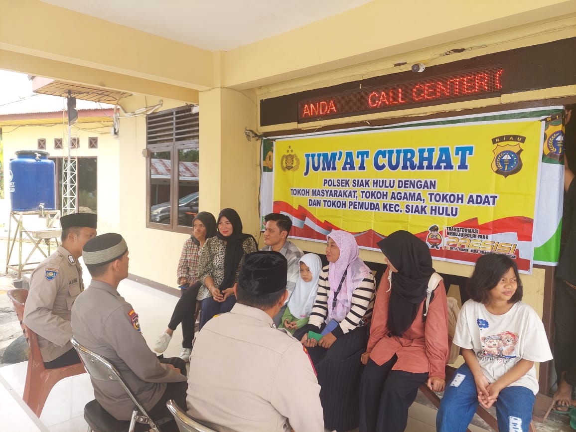 Dilanjutkan dengan giat Jum’at Curhat, Kapolsek Siak Hulu AKP Asdisyah Mursyid SH yang diwakili Kanit Binmas dan Bhabinkamtibmas. Jum’at Curhat kali ini sekaligus memberikan edukasi Kamtibmas kepada masyarakat Desa Tanjung Balam.
