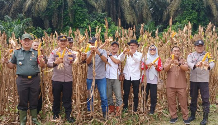 Tampak dalam kegiatan Panen Raya Jagung Kapolsek Siak Hulu AKP Hendra Setiawan, S.H, Kanit Binmas Adi Zulfikar, Kanit Intel Ipda Feri Setiawan, S.E, Bhabinkamtibmas Desa Pangkalan Baru Aiptu Adi Suyono, Danramil 06/SH Kapten Cba Y. Zebua didampingi Serda Arisman Harefa, Camat Siak Hulu Irwansyah, S.STP diwakili Pj. Sekcam M. Amin, Kades Pangkalan Baru Yusri Erwin diwakili Sekdes Andrian