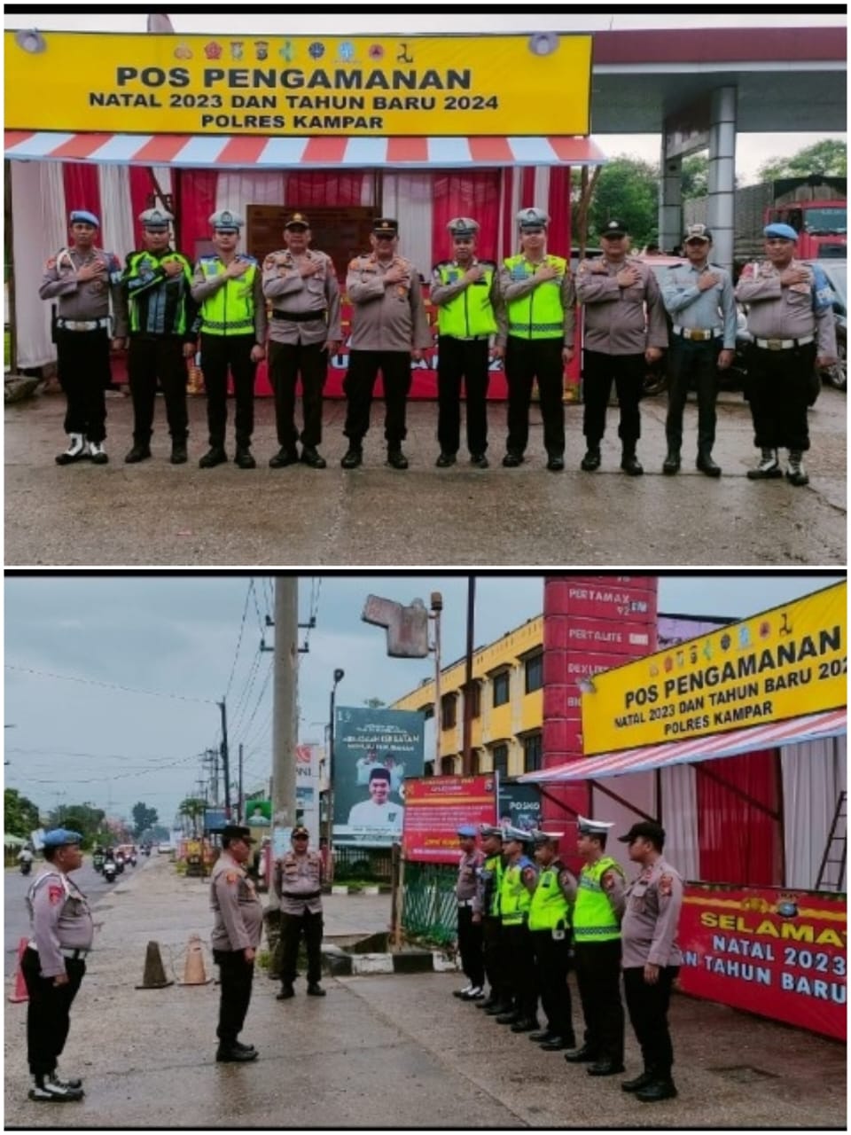 Memasuki hari ke-2 POSKO PAM Nataru 2023-2024 petugas pengamanan di komandoi Ka.Pos PAM Ipda Posman Tambubolon, Anggota Kanit Provost Bripka Firdaus S.H, Kanit Provost Aipda Junaidi S.H, Unit Sat Lantas Bripka Ahmadi, Bripka Ikradinata, Brigadir Rifky, Bripda M. Rafi Maulana, Koramil 06/SH Serma Harisyanto, Intel Kodim 0313/KPR Serka Agung Sedayu, Dishub Kampar Arif Rahman dan Alfitra Islam, Pol PP Kampar Khaidir dan M. Falah Al Fitrah.