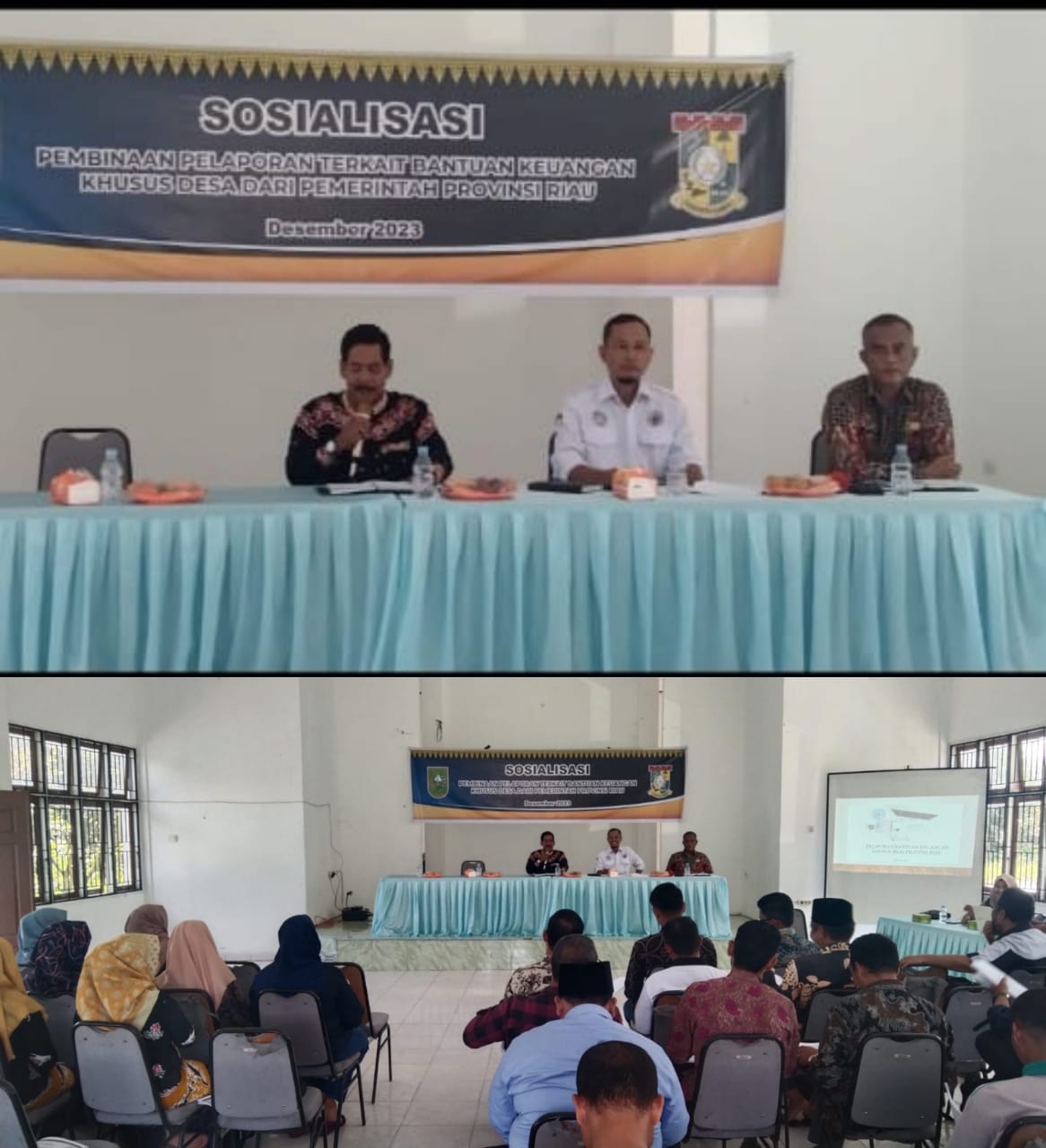 Bertempat di ruang Aula Kantor Camat, dalam pembukaannya Camat Perhentian Raja Agus Wiyana S.PdI menjelaskan, bahwa dalam sosialisasi Pembinaan Pelaporan Terkait BKK Desa Provinsi Riau Tahun 2023 merupakan bantuan dari Provinsi Riau dan di salurkan melalui APBD Kampar dan di alokasikan untuk pembangunan dan pemberdayaan desa.