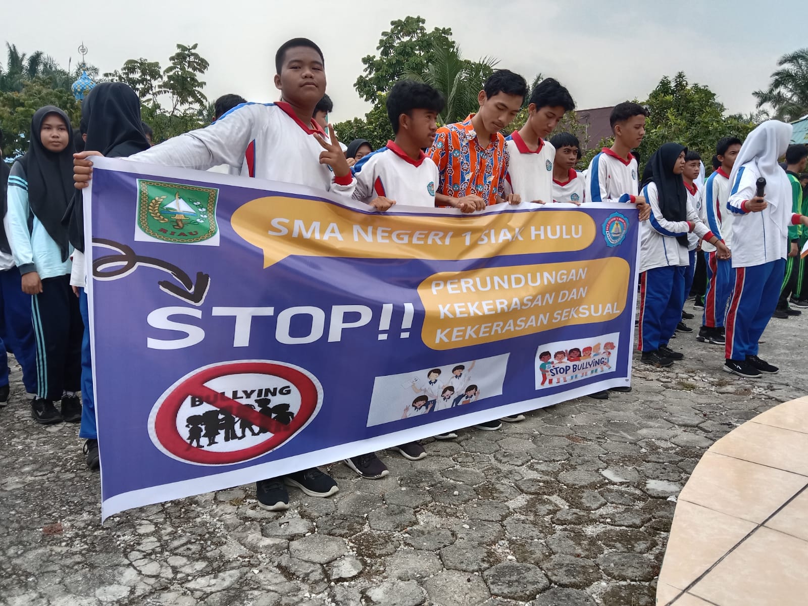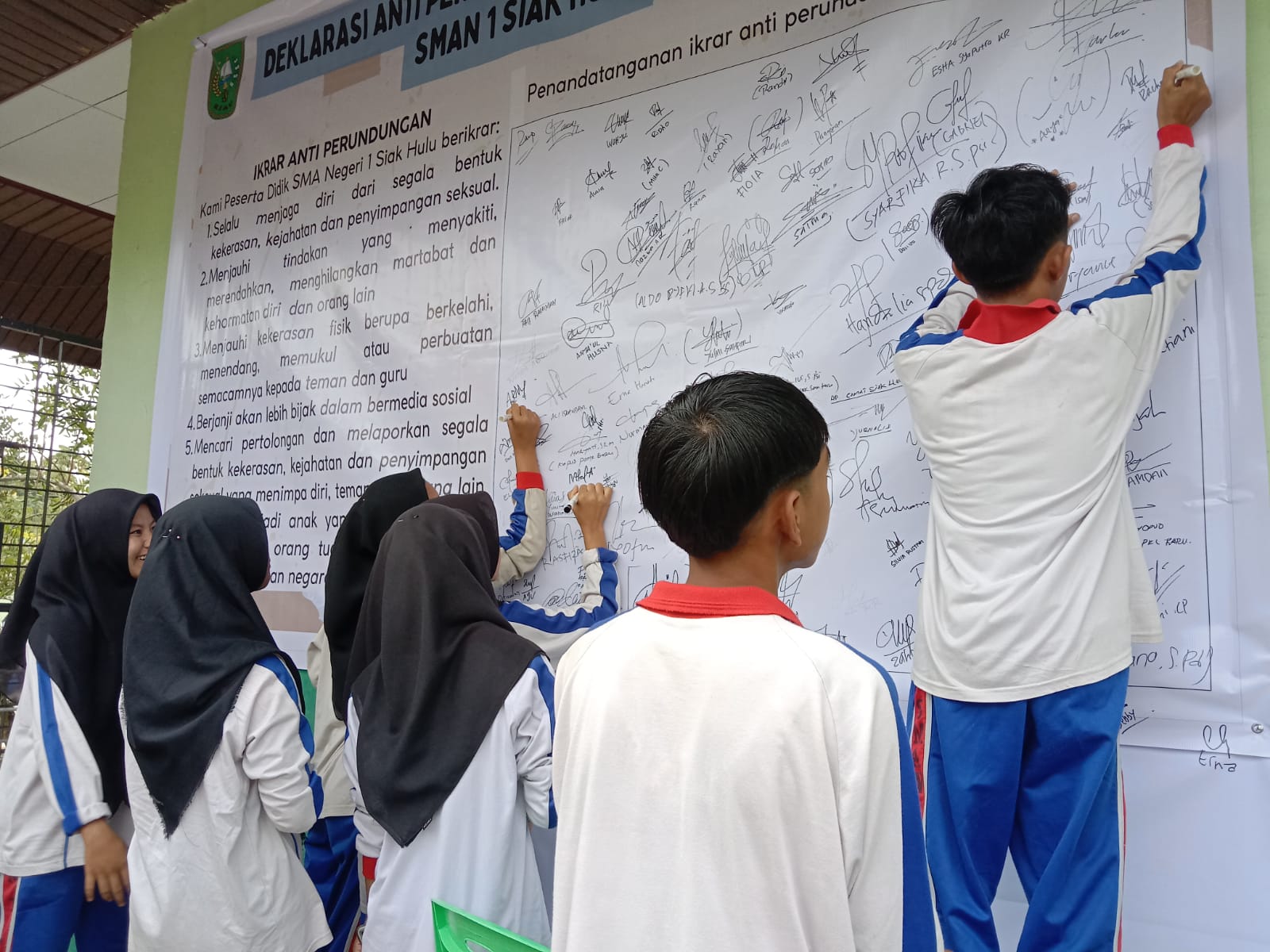 “Keluarga Besar SMAN 1 Siak Hulu, mengucapkan Sukses & Tetap Jaya SMAN 1 Siak Hulu Dan Tolak Keras Perundungan Atau Bullying, Kekerasan Dan Kekerasan Seksual, Siap Ciptakan Sekolah Yang Aman, Nyaman, Dan Damai.” (MO/HMP/SM)