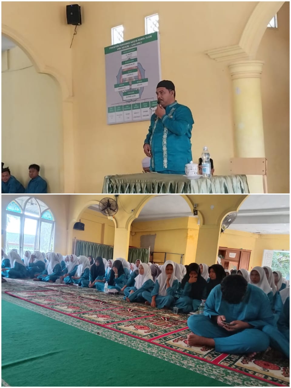 Dilanjutkan dengan Ketua Rohis Sumarni, S.Ag juga menyampaikan sebagai guru agama mata pelajaran Islam, kami memberikan motivasi kepada siswa siswi yang ikut acara adalah seorang yang beruntung, karena masih diberi hikmat kesehatan dan dapat menambah wawasan ilmu agama,” ucap Sumarni.