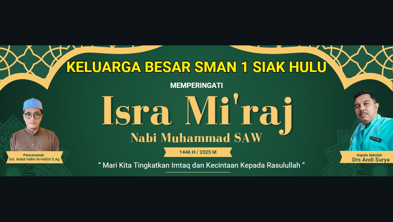 Pada kesempatan ini, Kamis (30/1/2025) sekira pukul 09.00 Wib, bertempat di Halaman Sekolah SMAN 1 Siak Hulu, acara memperingati Isra Miraj ini dihadiri Kepsek SMAN 1 Siak Hulu Drs. Andi Surya, Wskil Kes kesiswaan Ali Iskandar, S.Sos, M.Pd, Ketua Rohis Sumarni, S.Ag, M.Pd, dan seluruh Majelis guru, penceramah Ustad Abdul Halim Al Hafizah, S.Ag, serta siswa siswi.