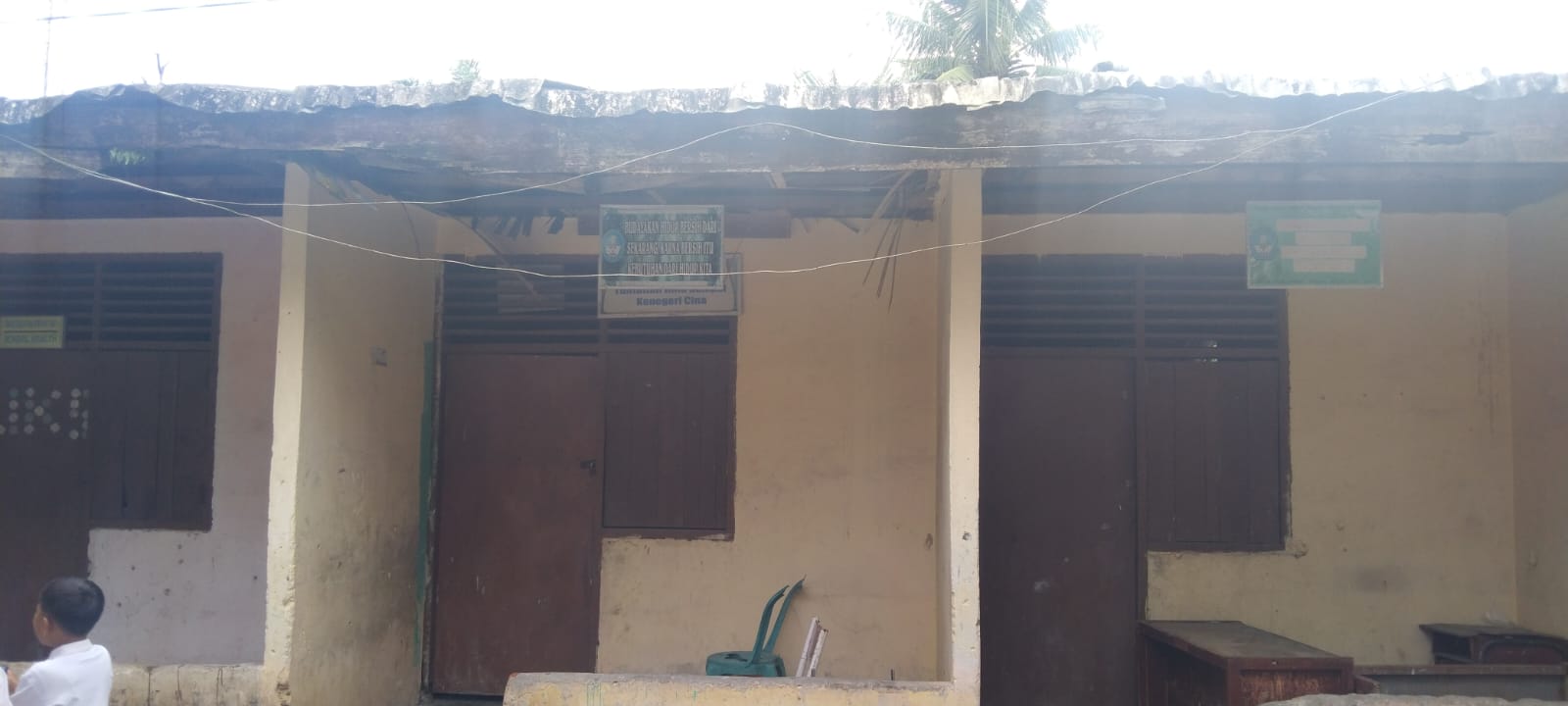 Lanjutnya lagi, mari kita lihat ruang UKS yang di pakai sementara, kondisinya bangunan perlu dilakukan Rehab sebab plafonnya sudah banyak yang berjatuhan dan atapnyapun sudah mulai berkarat dan keropos. Dalam hal ini kami sangat mendambakan perhatian dan bantuan pihak pemerintah kabupaten/pusat.