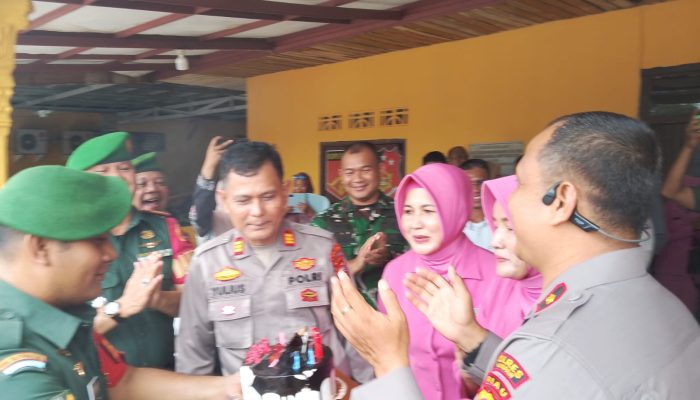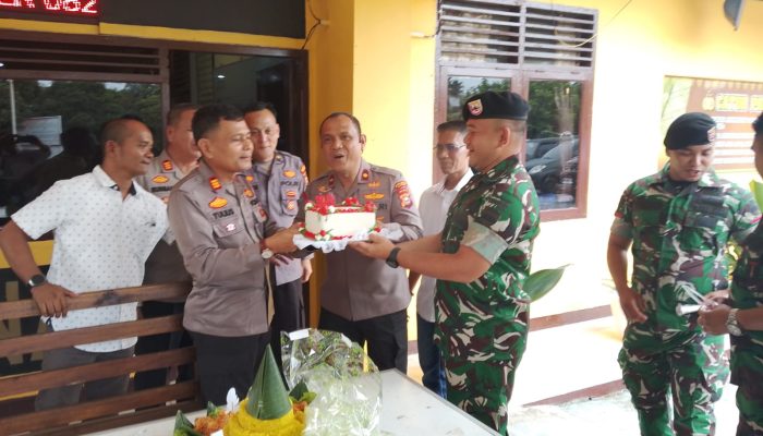 Kehadiran kedua komandan dari TNI ini di sambut langsung Kapolsek.Siak Hulu Kompol Hendra Setiawan, S.H didampingi Waka Polsek AKP Yulius, S.Psi dan juga tampah hadir Camat Siak Hulu Irwansyah, S.STP. Tampak tidak tangan kosong kedua Komandan TNI ini membawa Kue Tart dan Nasi Tumpeng yang bertuliskan “Selamat HUT Bhayangkara Ke-79”