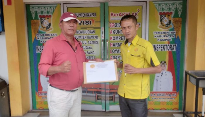 Kampar, Harimaupagi.com – Lembaga Cakra Indonesia (LCI) pada Senin, 8 Desember 2025, resmi menyerahkan laporan dugaan penyimpangan Dana Desa Kampung Pinang kepada Inspektorat Kabupaten Kampar. Laporan tersebut diantar langsung oleh Ketua Umum LCI, Sunggul Manalu, bersama Sekretaris Umum LCI, Tri Wahyudi, sebagai bentuk keseriusan lembaga dalam menindaklanjuti temuan investigatif di tingkat desa.