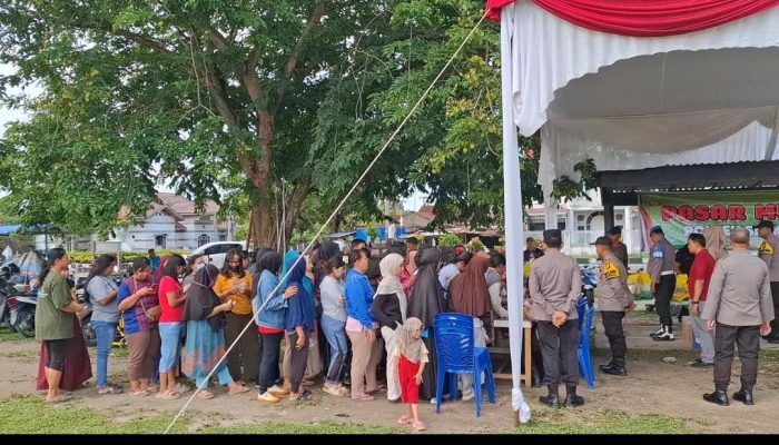 Kampar,Harimaupagi.com – Ratusan masyarakat yang tergabung di Kecamatan Siak Hulu, antusias serbu “Pasar Murah” yang digelar Polsek Siak Hulu. Kamis (14/8/2025) sekira pukul 09.00 Wib, bertempat di Halaman Puskopkar Desa Pandau Jaya kecamatan Siak Hulu Kabupaten Kampar.