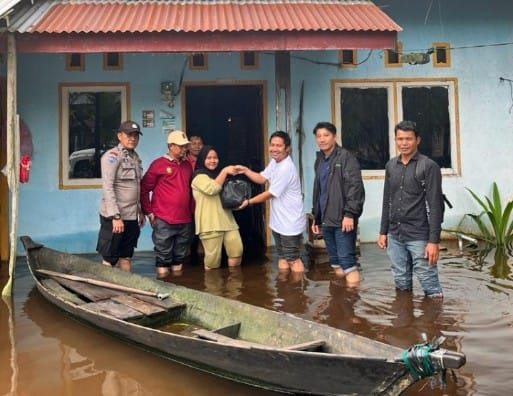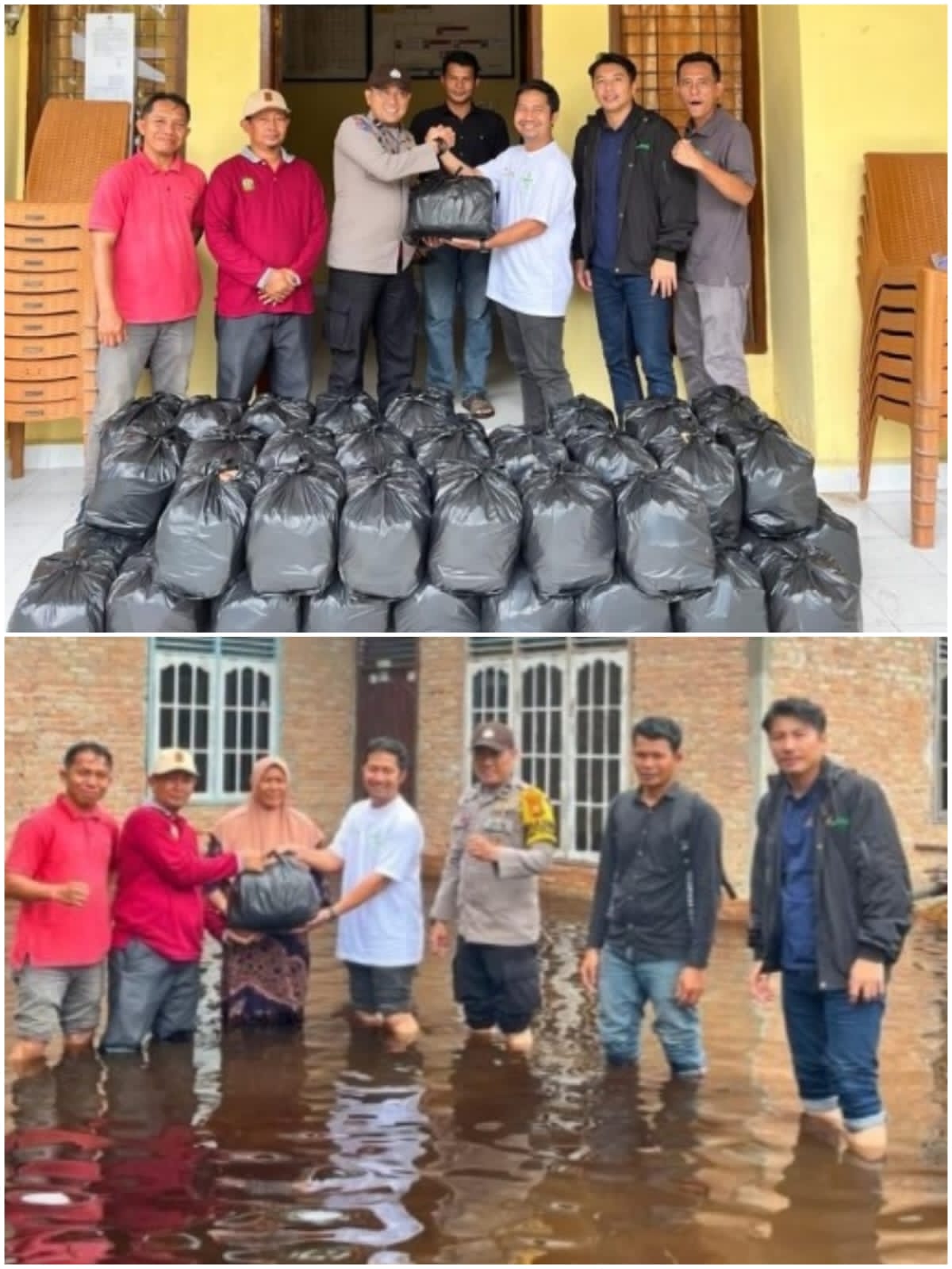 Bhabinkamtibmas Desa Buluh Nipis Aipda Nurhasdianto S.H bersama Manajement Emp Tunas Energi Ismulyadi dan Humas : Nor Setiawan, Fenly Dorike, Zulkhairi, Novi Saputri, bersepakat akan membantu masyarakat yang terdampak banjir di Desa Buluh Nipis.