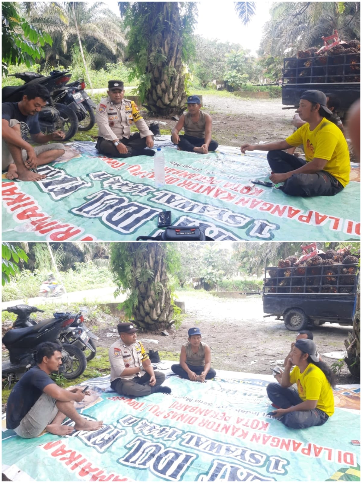 Kampar, Harimaupagi.com –Sungguh Luar Biasa, dalam pengamanan Kamtibmas serta kegiatan lainnya. Bhabinkamtibmas Desa Lubuk Sakat Polsek Perhentian Raja Bripka Ismail Marzuki melaksanakan Giat Cooling System kepada para pekerja buruh Kebun Kelapa Sawit yang berdomisili di Desa Lubuk Sakat kecamatan Perhentian Raja kabupaten Kampar. Kamis (25/1/2024)