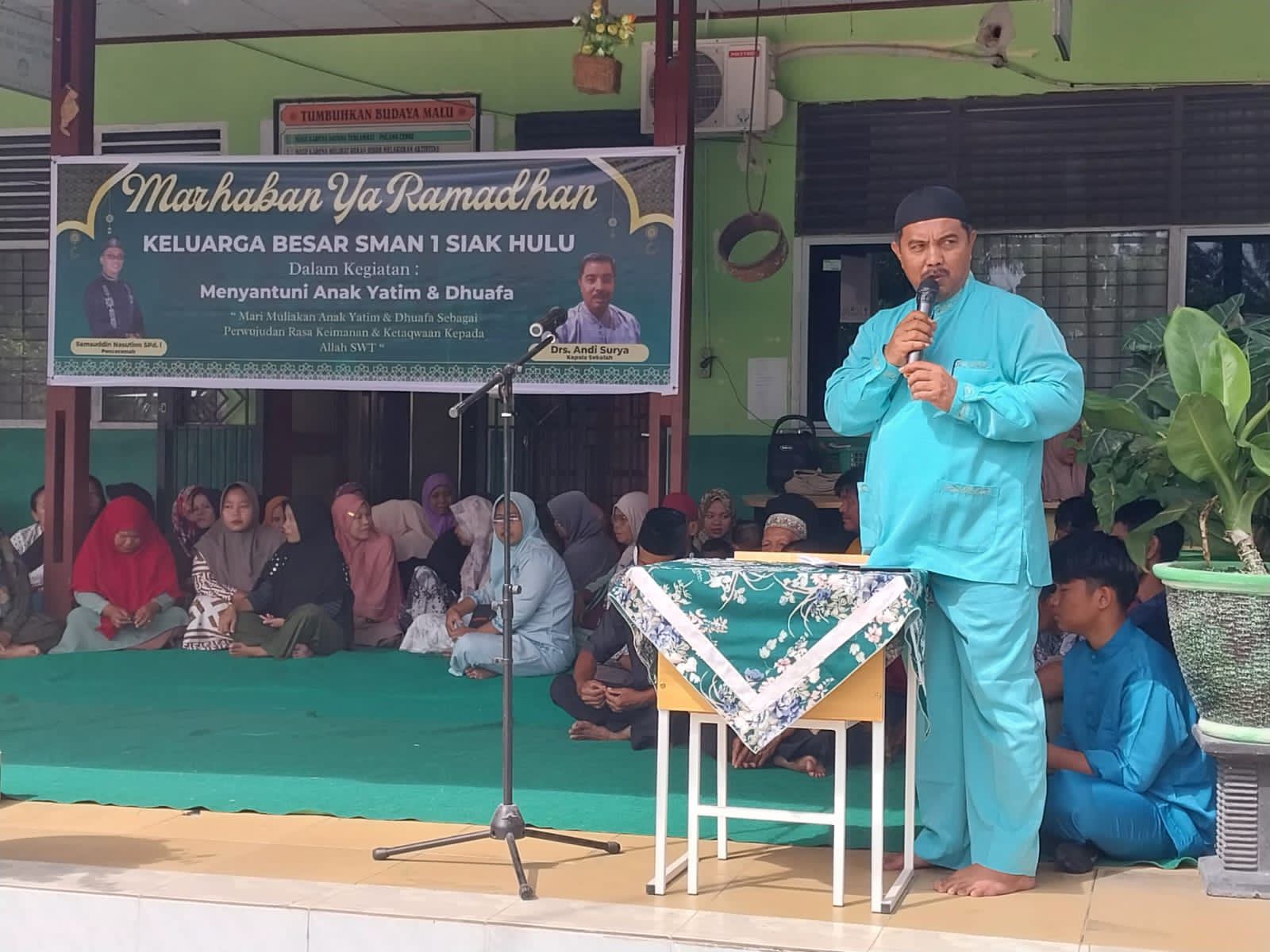 Penyantunan anak Yatim dan Piatu serta Dhuafa dilaksanakan secara rutin setiap tahunnya, sebelum menjelang bulan Suci Ramadhan. Terlaksananya kegiatan ini berkat santunan yang berasal dari Infak serta Donatur guru dan Karyawan SMAN 1 Siak Hulu.” ungkap Drs. Andi Surya
