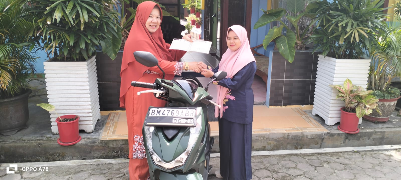 Tampak seorang guru yang tidak mau disebutkan namanya, sedang membeli 1 unit sepeda motor dari Kopsya Satu UPT SMPN 1 Siak Hulu.” Saya sangat berterima kasih atas gagasan Keluarga besar UPT SMPN 1 Siak Hulu, dengan begini saya bisa membeli sepeda motor dengan cicilan yang murah dan terjangkau,” ucapnya tersenyum. (MO/HMP/SM)