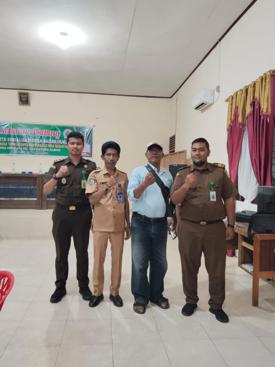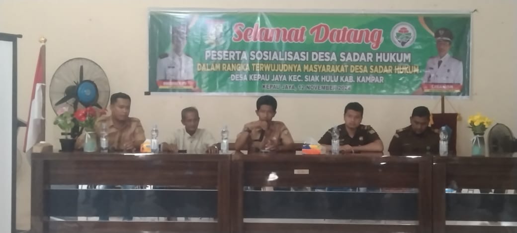 Peran Kejaksaan Negeri (Kejari) Kampar melalui Program Jaga Desa, M. Sadiq Anggara S.H selaku Narasumber bersama M. Farauq Akbar sosialisasikan Desa Sadar Hukum dan Program Jaga Desa di Desa Kepau Jaya, Selasa (12/11/2024) sekira pukul 15.00 Wib.